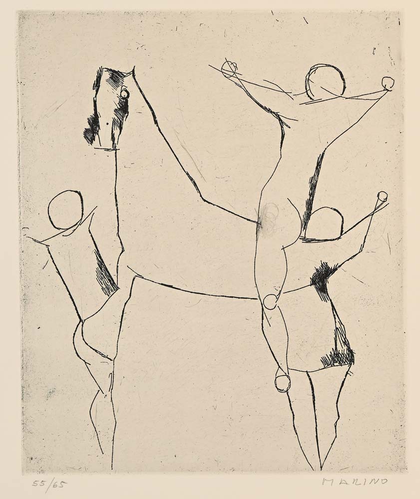 Marino Marini Pistoia 1901-Viareggio 1980 Senza titolo Acquaforte cm 54x43 Firma e numerazione "Marino 55/65"