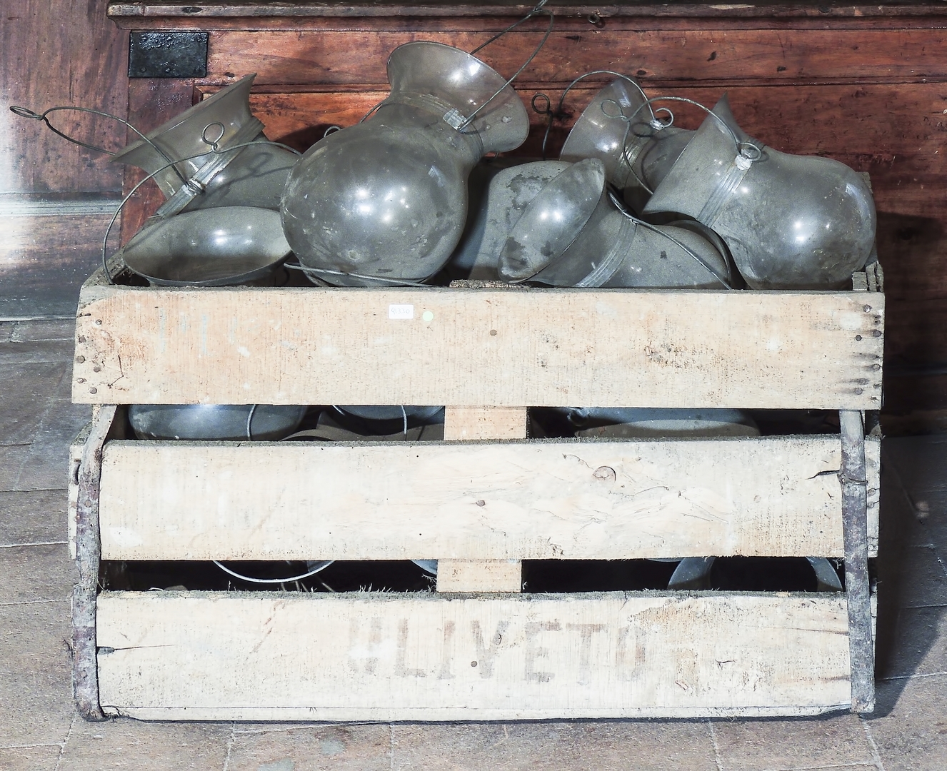 GRANDE LOTTO DI BOBECHE IN VETRO SOFFIATO XIX secolo realizzate a goccia