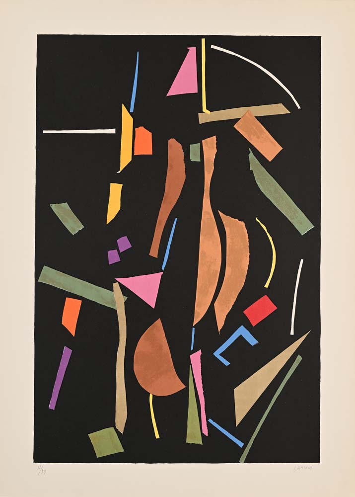 André Lanskoy Mosca 1903-Parigi 1976 Senza titolo Litografia cm 70x50 Firma e numerazione a matita "Lanskoy 11/99". Timbro a secco dello stampatore "Alberto Caprini Stampatore in Roma".