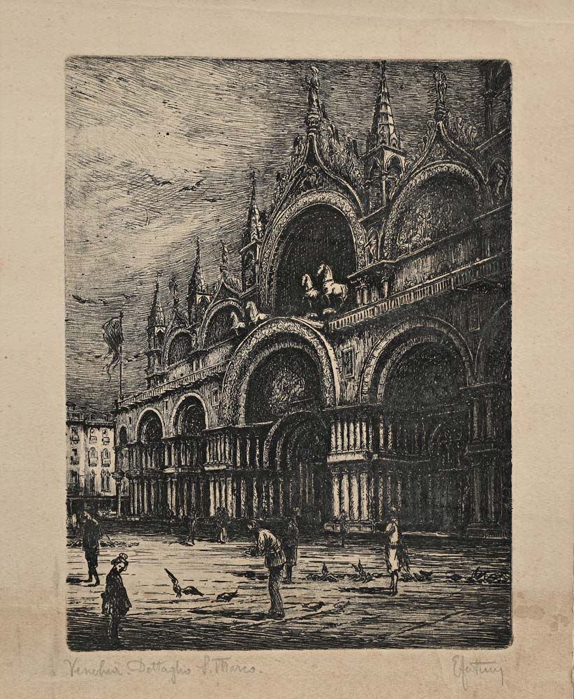 Ernesto Festucci Due incisioni raffiguranti Venezia (Dettaglio di San Marco e...