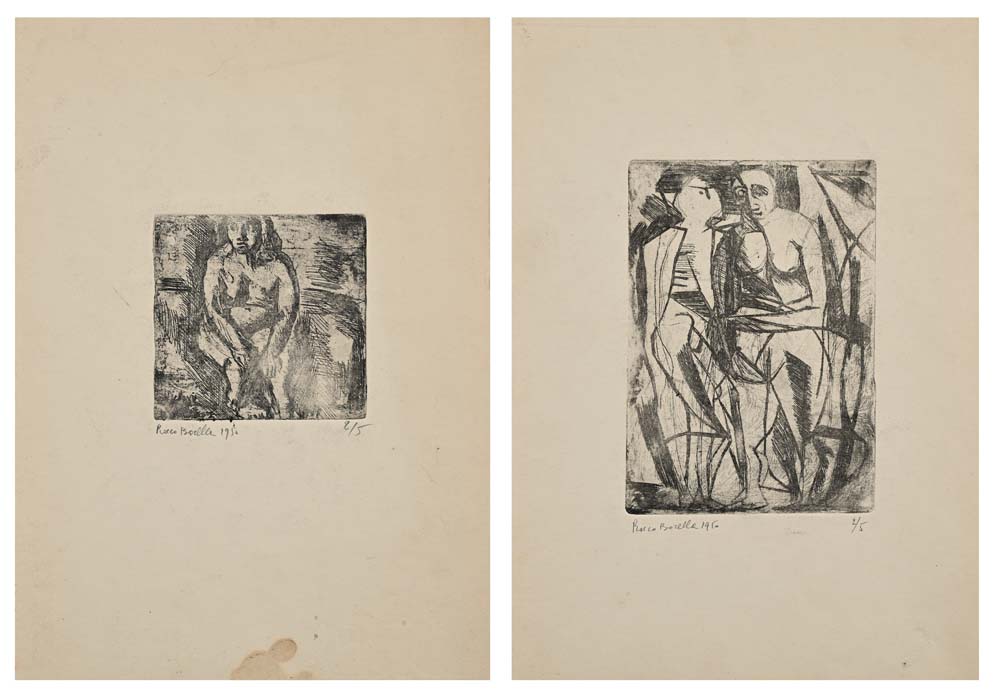 Rocco Borella Genova 1920-Genova 1994 Due incisioni raffiguranti nudi 1950...