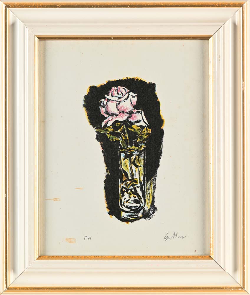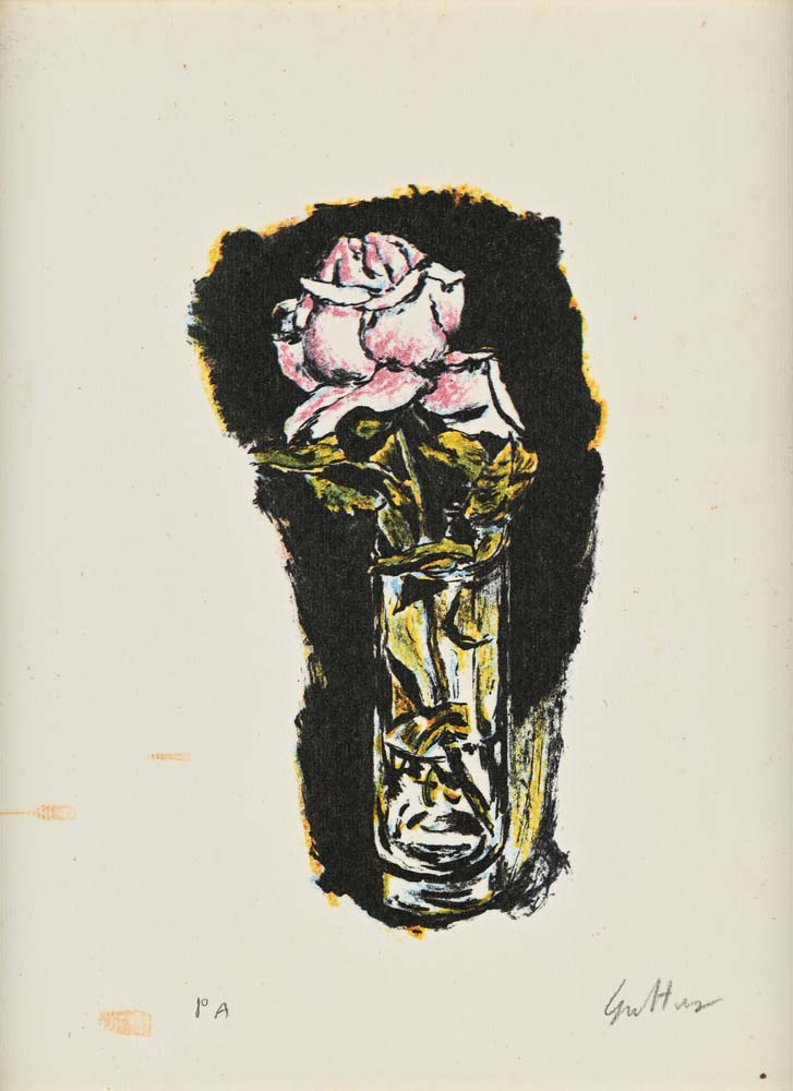 Renato Guttuso Bagheria 1911-Roma 1987 Vaso di fiori Serigrafia cm 24x19 - in cornice cm 33x28 Firma e numerazione "Guttuso pa.". Timbro a secco