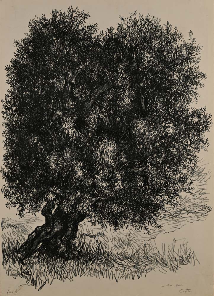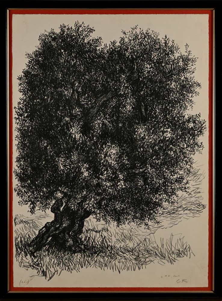 Renato Guttuso Bagheria 1911-Roma 1987 Albero Litografia cm 70x50 - in cornice cm 77x57 Firma, dedica e numerazione "p.d.a., a M.N. Renato Guttuso".