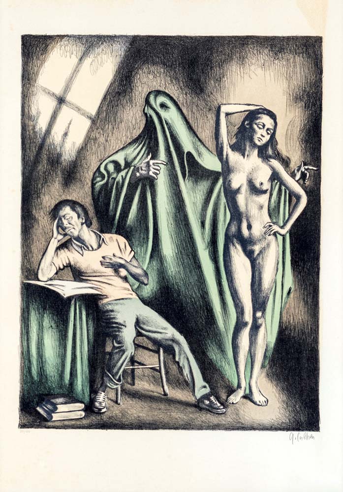 Gregorio Sciltian Rostov 1900-Roma 1985 Sogno di un regista 1983 Litografia cm 70x50 - in cornice cm 80,5x60,5 Firma e numerazione "G. Sciltian 30/120". Timbro a secco. Certificato di autenticità rilasciato dalla "Edizioni Eldec Roma".