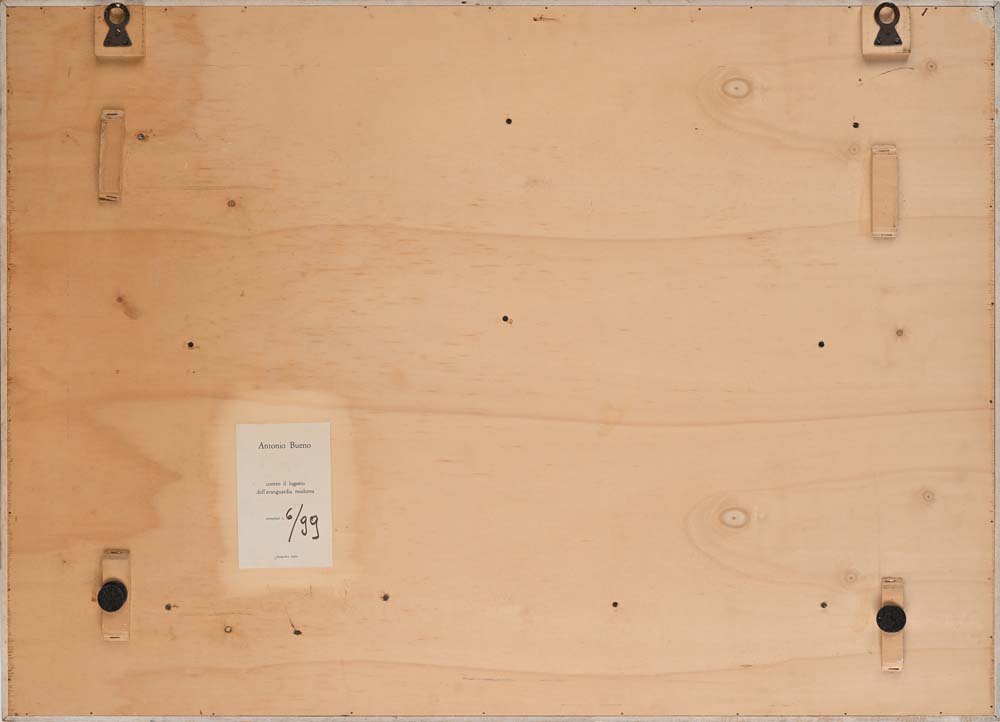 Antonio Bueno Berlino 1918-Fiesole 1984 Contro il logorio della Avanguardia Moderna Scultura multiplo cm 75x105 Firma in alto a sinistra "A. Bueno". Al verso reca etichetta "Calcografia Studio" e numerazione 6/99