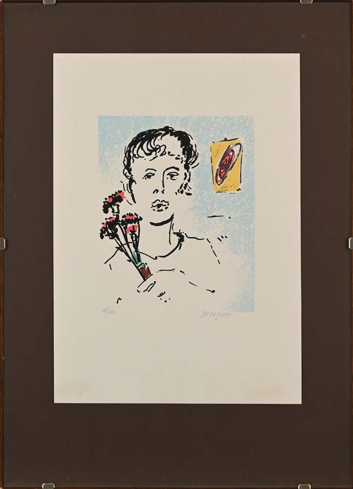 Sante Monachesi Macerata 1910-Roma 1991 Ritratto di uomo con masso di fiori Litografia cm 50x35 - in cornice cm 70x50 Firma e numerazione "Monachesi 37/100"