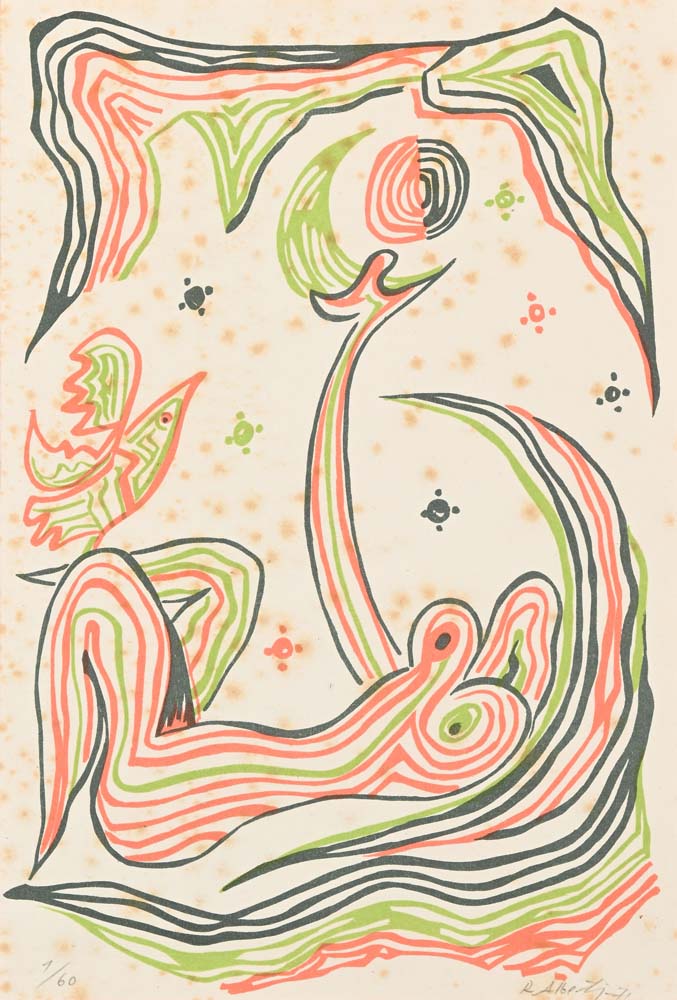 Rafael Alberti El Puerto de Santa Maria 1902-Cadice 1999 Senza titolo Litografia cm 29x19 - in cornice cm 42x32 Firma e numerazione "R. Alberti 1/60"