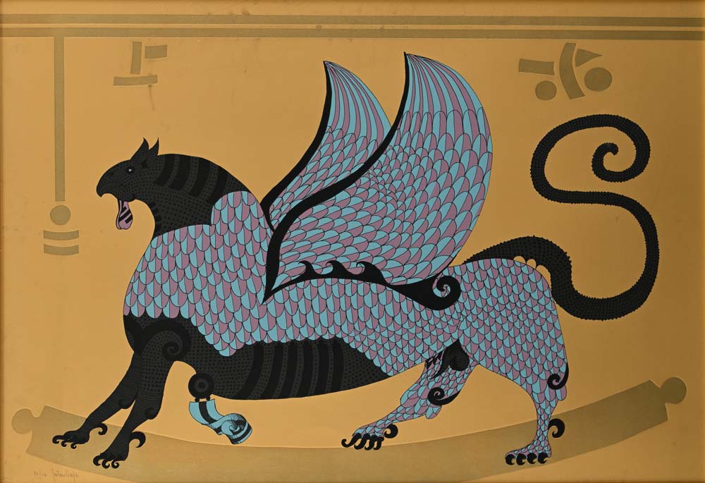 Gaetano Pompa Forenza 1933-Orbetello 1998 Chimera Serigrafia a rilievo cm 70x100 - in cornice cm 88x118 Firma e numerazione "Gaetano Pompa 90/120". Timbro a secco 3K