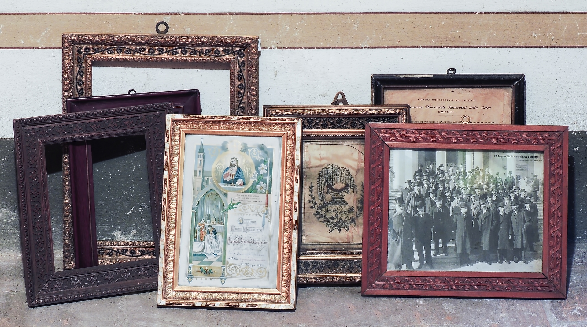 LOTTO DI CORNICI D'EPOCA tra cui alcune in pastiglia dorata, difetti (14)