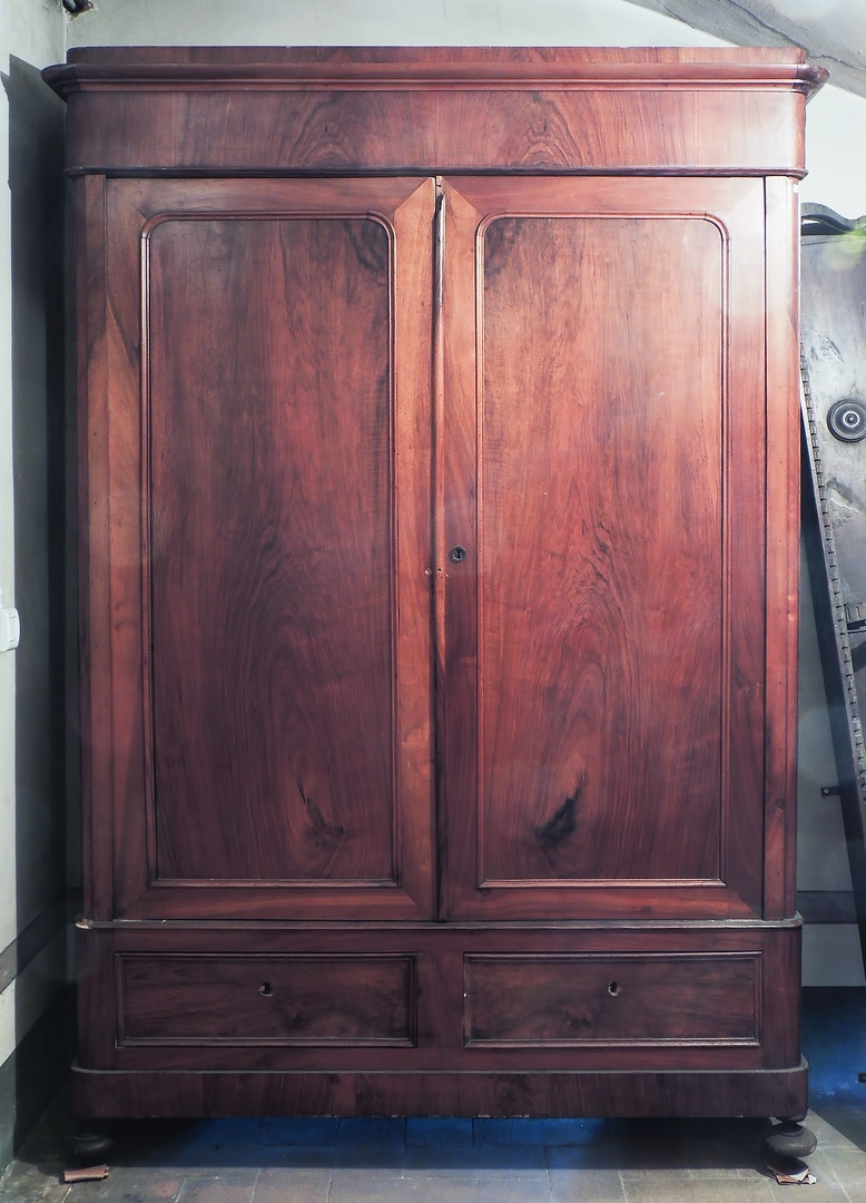 ARMADIO IN NOCE XIX secolo cappello modanato, fronte a due sportelli e due...