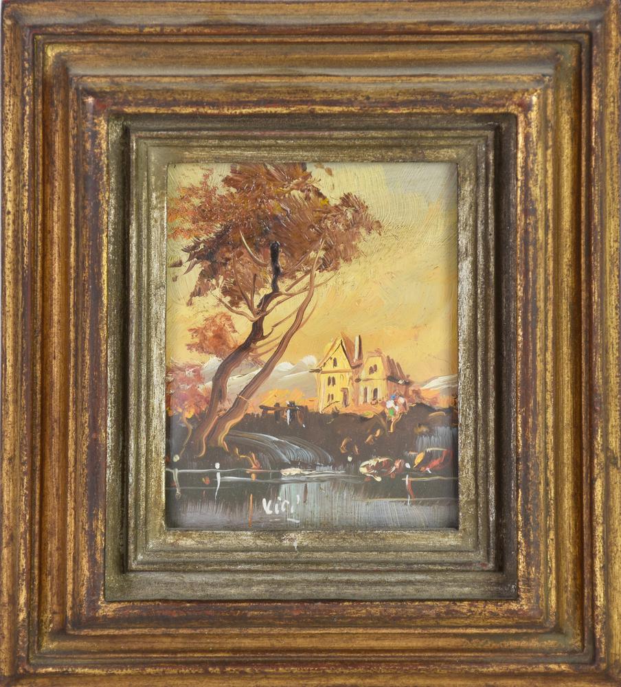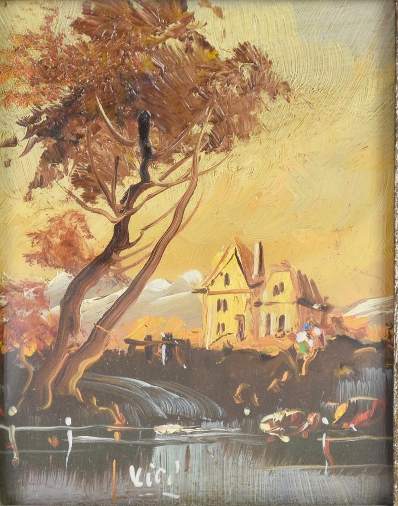 Ignoto PAESAGGIO olio su tavola, cm 9x7 firma
