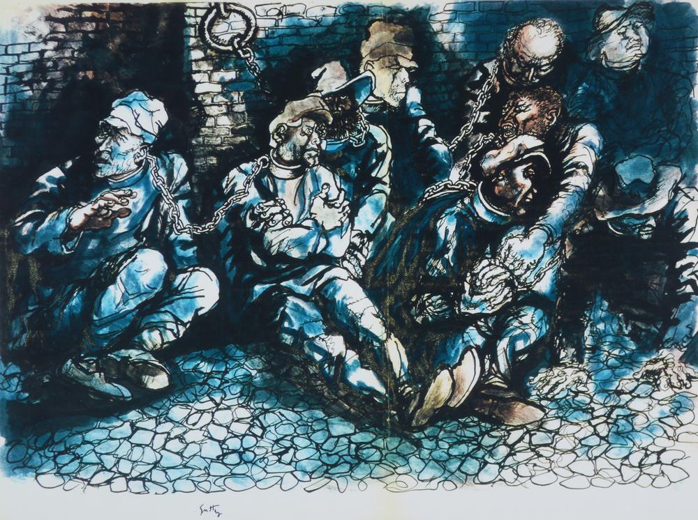 Renato Guttuso PRIGIONIERI fotoriproduzione, cm 41x55 sul fronte: firma in...