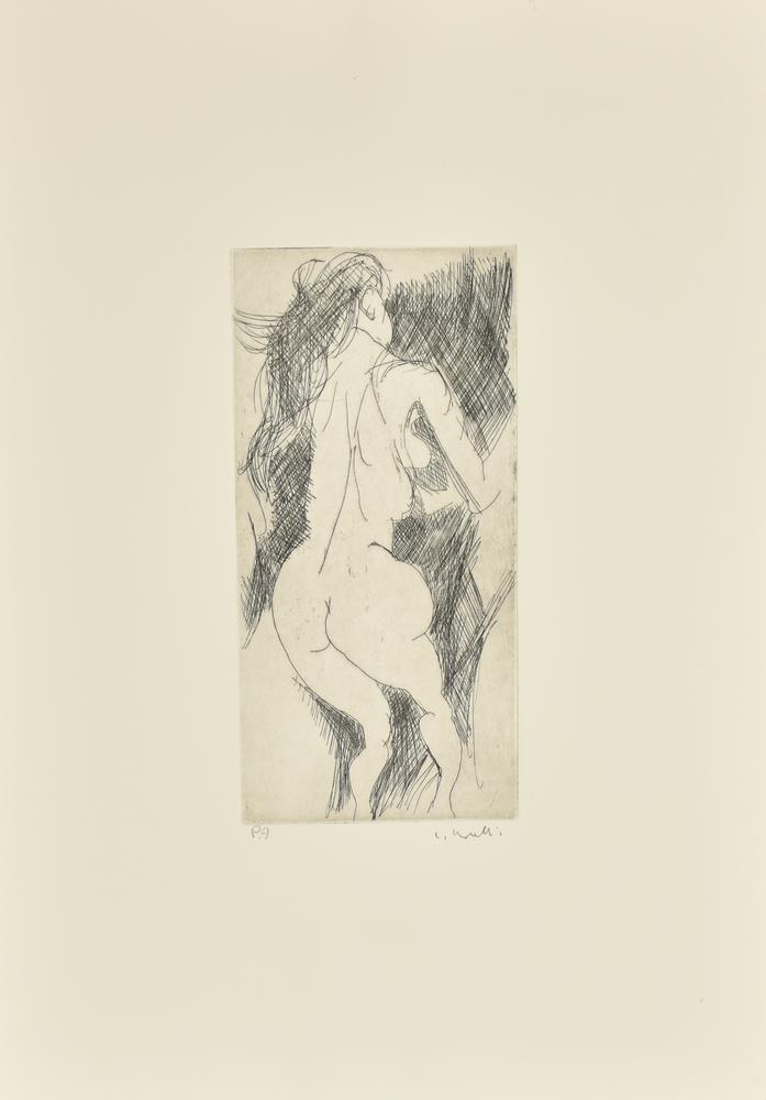 Carlo Morelli STUDIO DI NUDO acquaforte su carta, battuta cm 25x12, su foglio...
