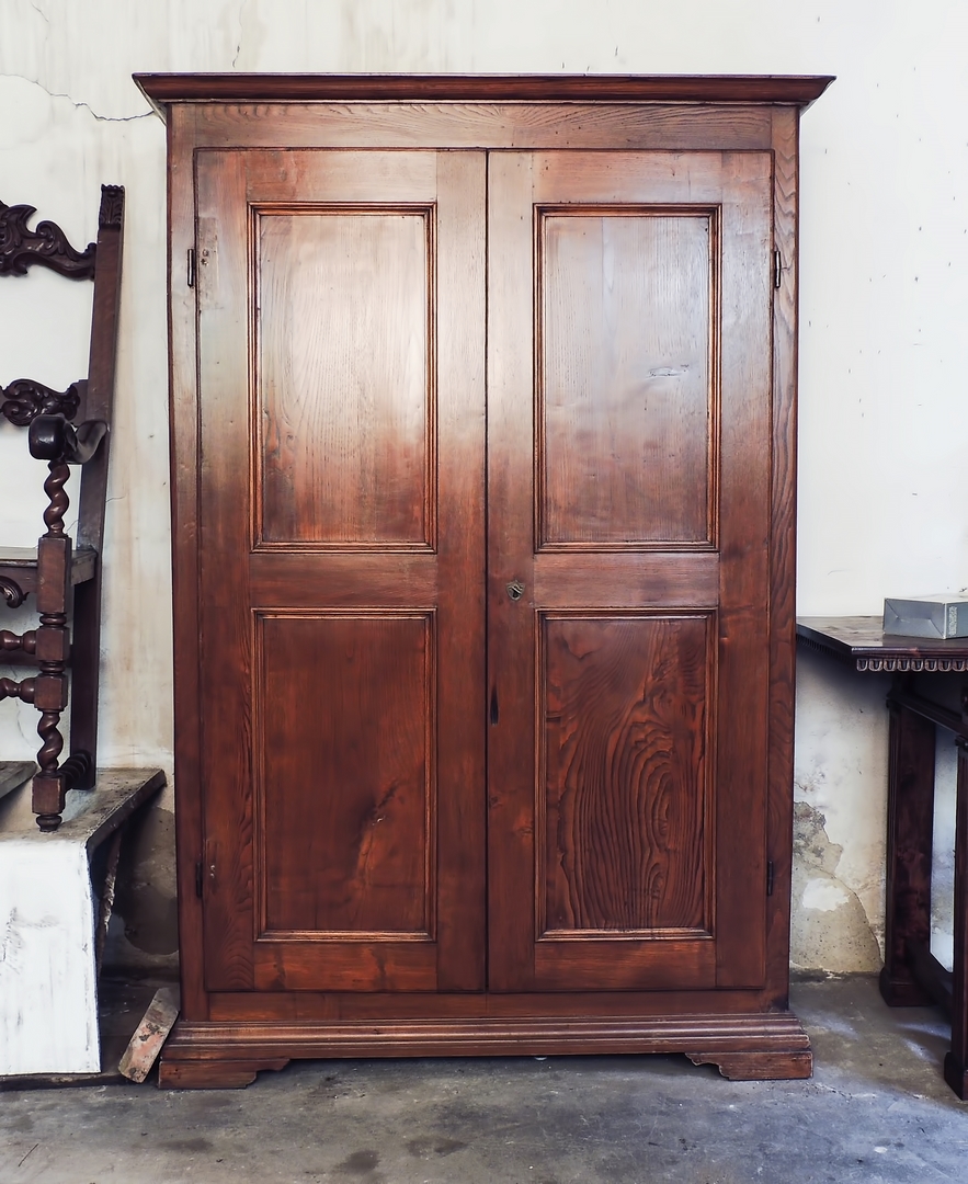 PICCOLO ARMADIO IN ROVERE cappello modanato, fronte a due ante, piedi a mensola h cm 189,5x129x52