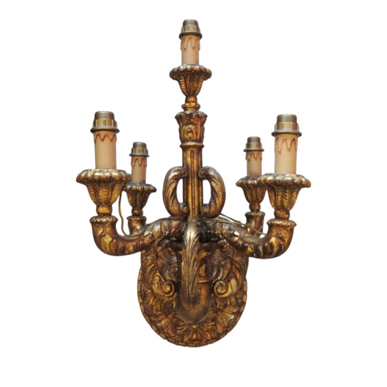 Lot 17 | Grande braccio a cinque luci in legno intagliato e dorato, modellati a tralci vegetali