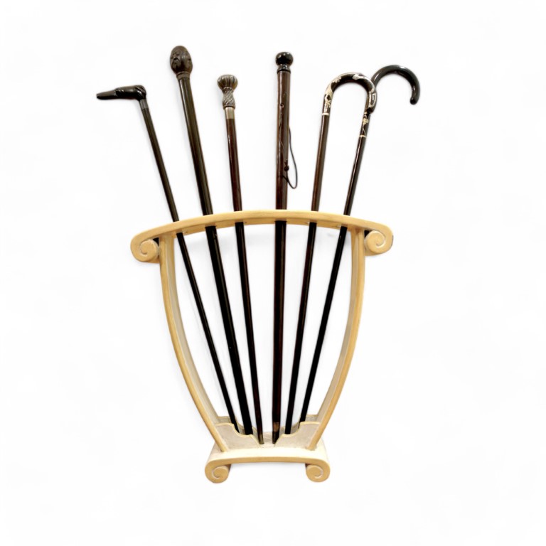 Lotto di bastoni da passeggio, su stand porta bastoni