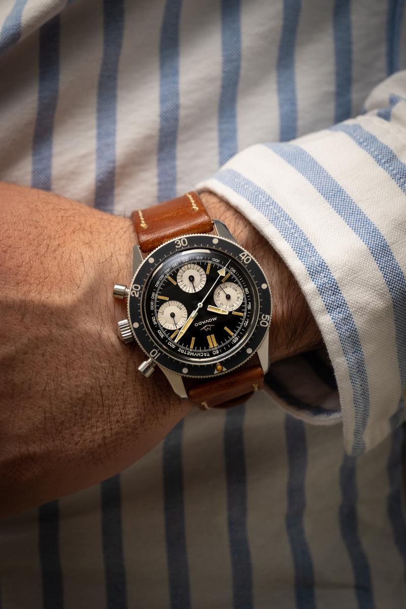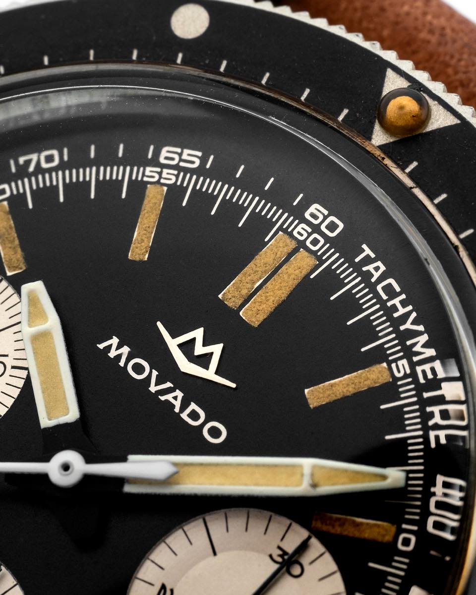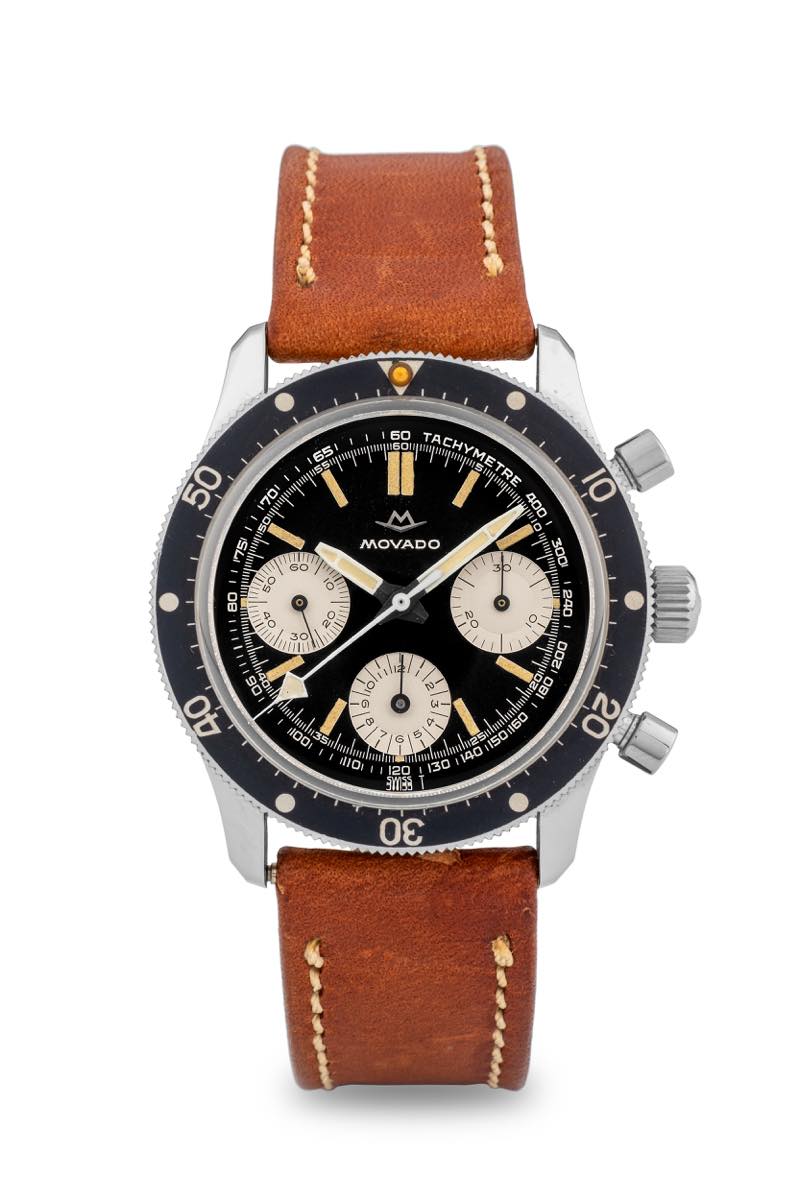 § MOVADO Super Sub Sea. Referenza 206-704-501. Movimento 146 HP a carica manuale. Cassa in acciaio con diametro da 41 mm. Dial nero con indici a bastone a 3 contatori con secondi al 9. Lunetta girevole bidirezionale. Bracciale in pelle non originale con fibbia ad ardiglione in acciaio anonima. Fondello in acciaio inciso esternamente. Vetro plexiglas. 1970 ca. Orologio in buone condizioni generali. Al momento della catalogazione l’orologio risulta essere funzionante ma il movimento non è stato testato per la precisione del tempo.