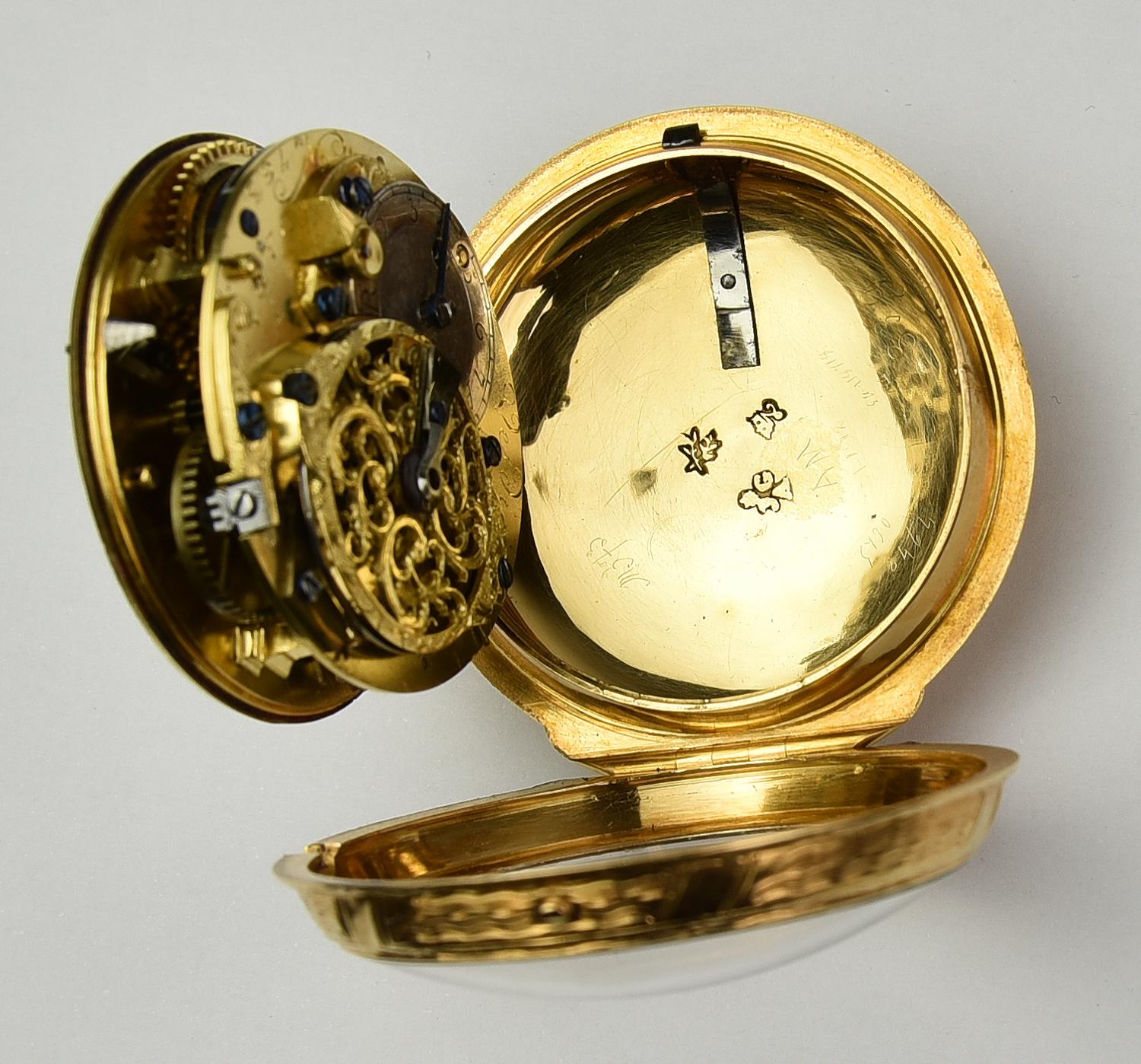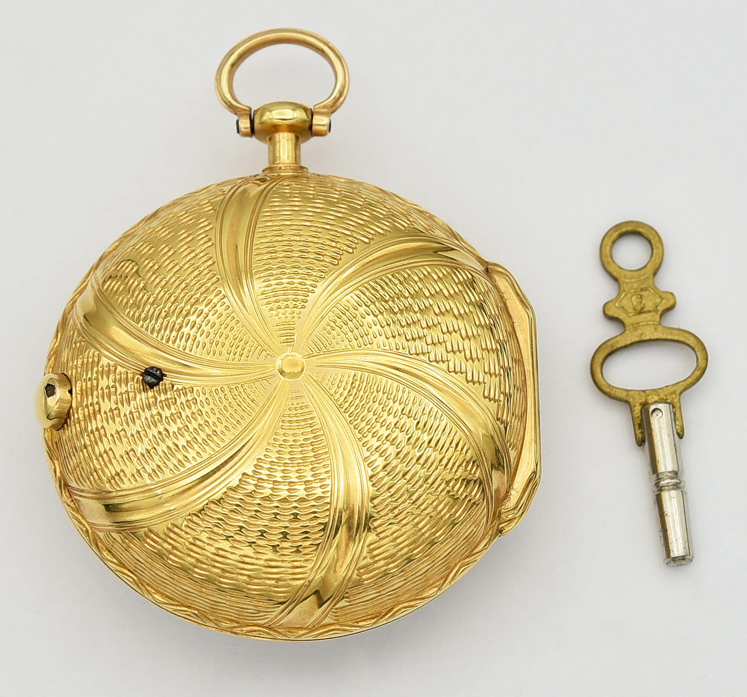 OROLOGIO DA TASCA VERDIER IN ORO 18K, CON CHIAVE, PARIS,1820-1850 CASSA: testata oro 18K lavorata a sbalzo e incisione