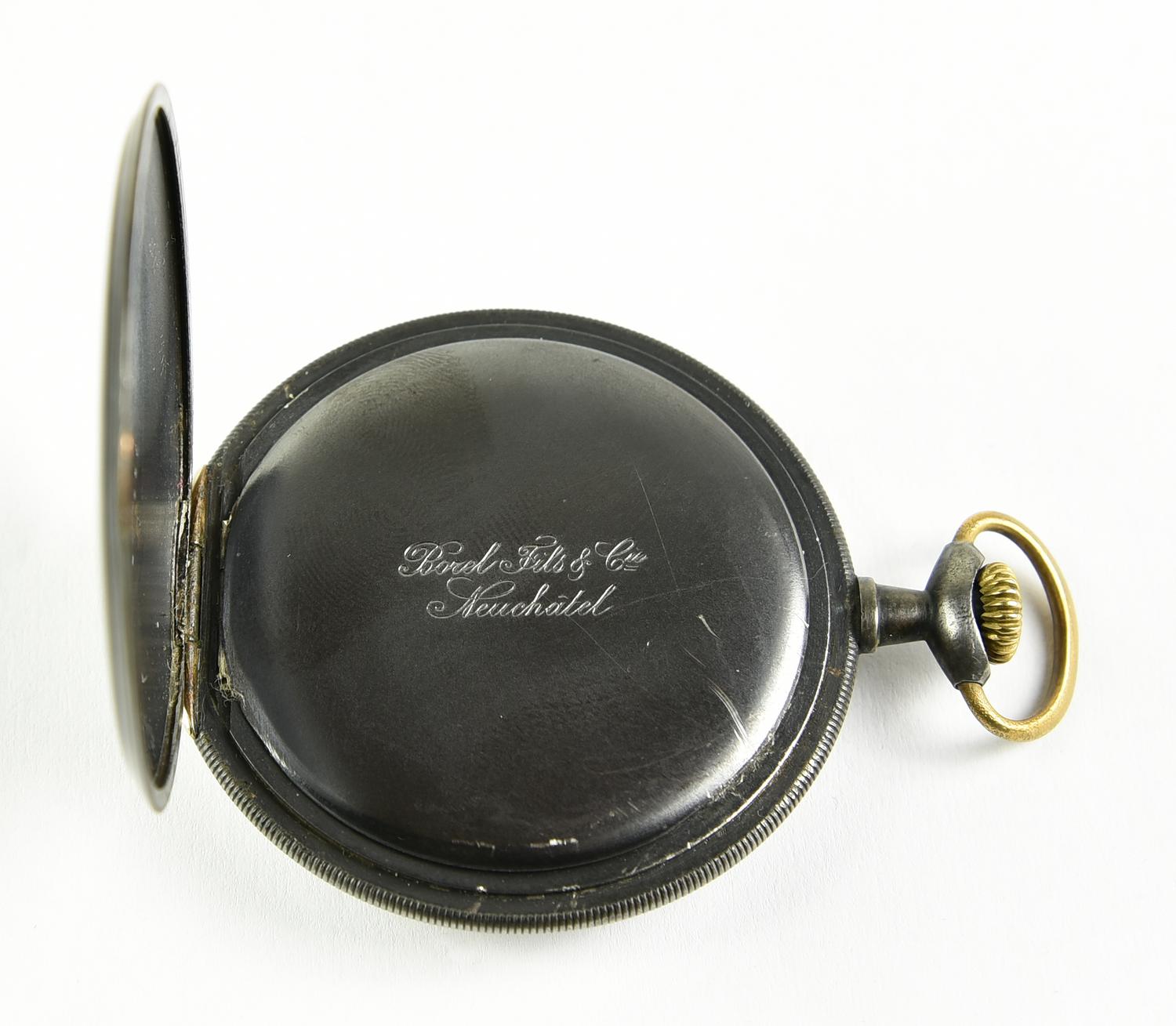 CASSA: in acciaio con doppio fondello; numero di cassa visibile sulla superficie interna di entrambi i fondelli; sulla superficie esterna del fondello piu' interno inciso: "Borel fils & Co/Neuchatel"