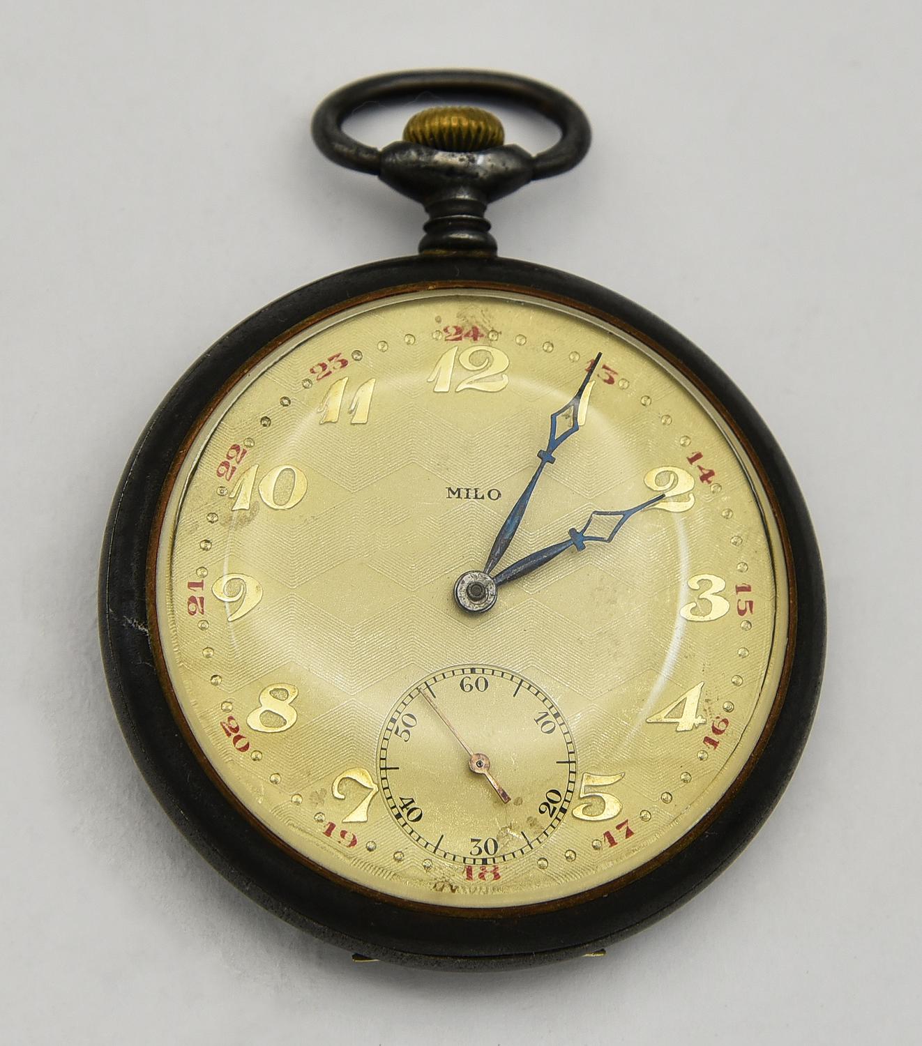 Orologio da tasca Milo, primi 900, acciaio CASSA: in acciaio QUADRANTE:...