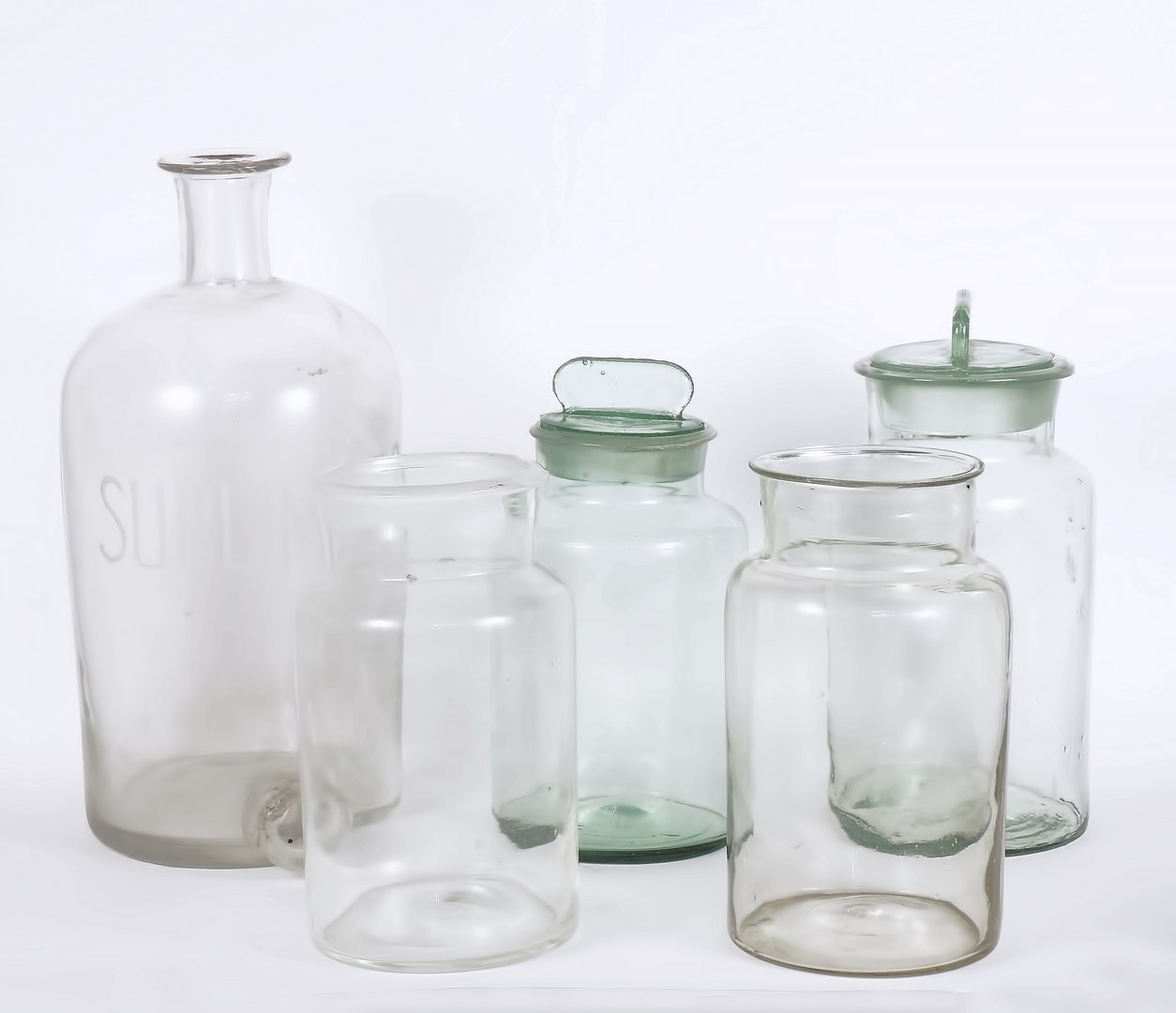 GRANDE LOTTO DI BARATTOLI E BOTTIGLIE IN VETRO tra cui alcuni d'epoca (11)