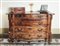 CASSETTONE IMPIALLACCIATO IN NOCE E PIUMA DI NOCE metà del XVII secolo piano sagomato, angoli scantonati con lesene a doppia voluta, fronte mosso con due mezzi cassetti sotto il piano e tre sottostanti, piedi a mensola, alcuni restauri h cm 95x149x68