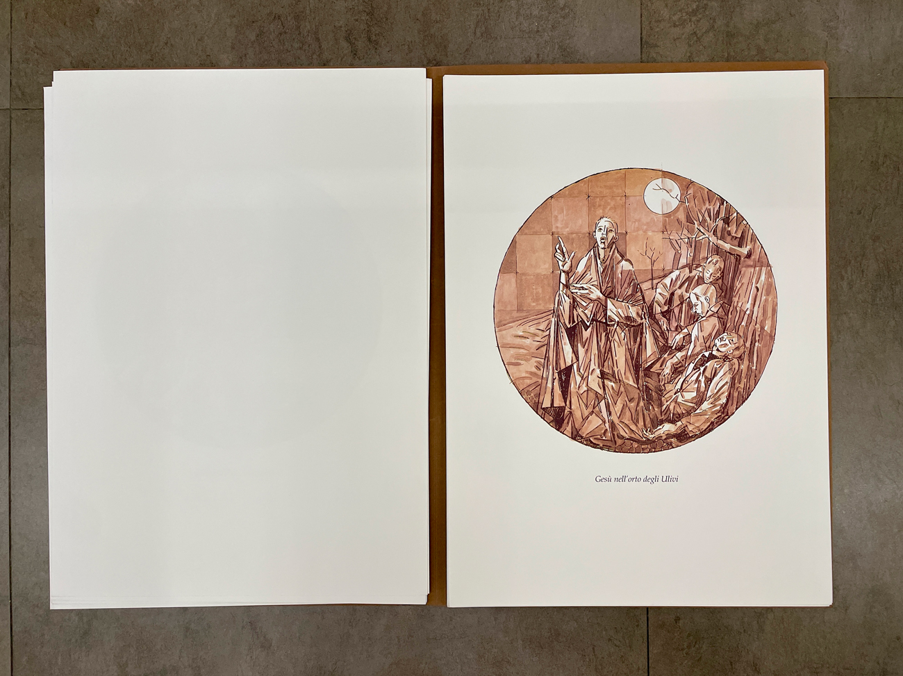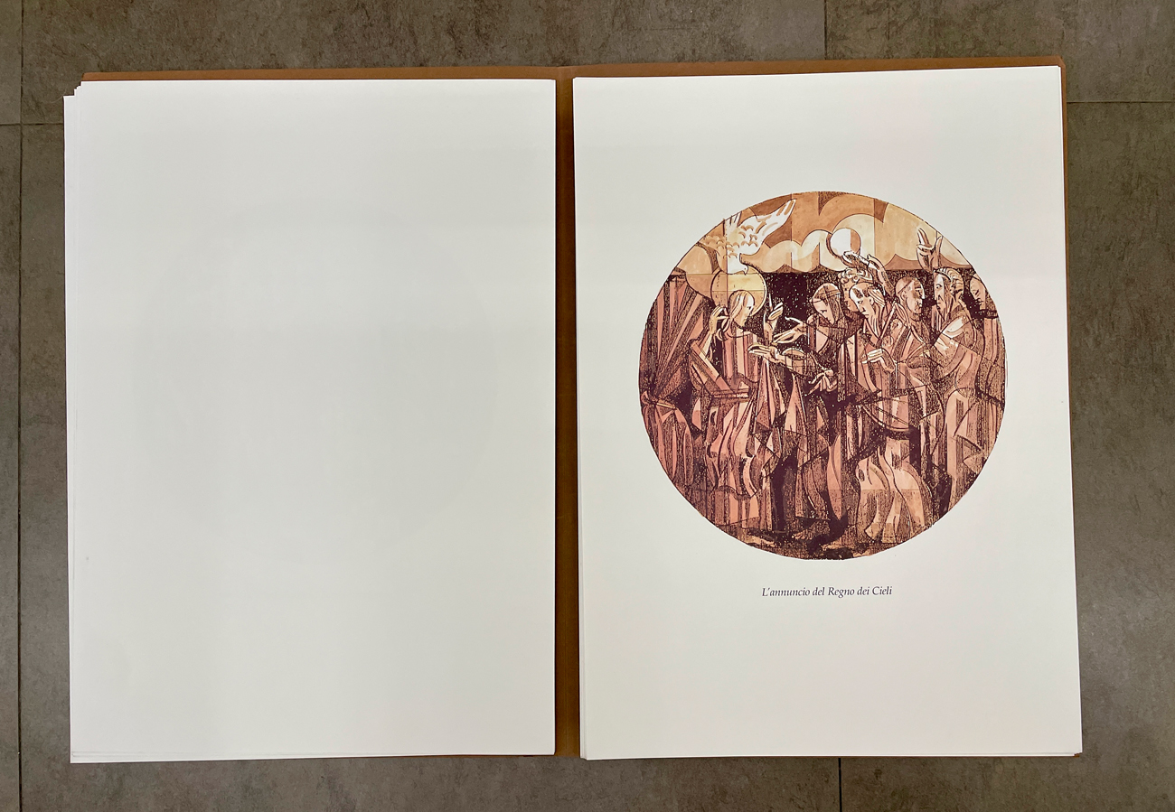 Folder contenente 21 riproduzioni fotolitografiche sciolte di opere di Floriano Bodini (Cartella edita in omaggio a Sua Santità Giovanni Paolo II nel 25esimo di Pontificato (1978-2003))