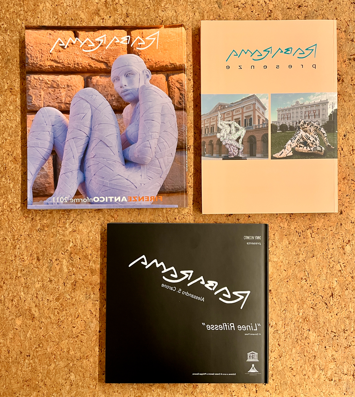Catalogo riccamente illustrato con testi critici di Luca Beatrice e George Bolge, edito in occasione dell'esposizione tenutasi presso Piazza Pitti, Giardino di Boboli, Giardino delle Scuderie Reali, Complesso Le Pagliere, Firenze, 2011