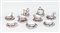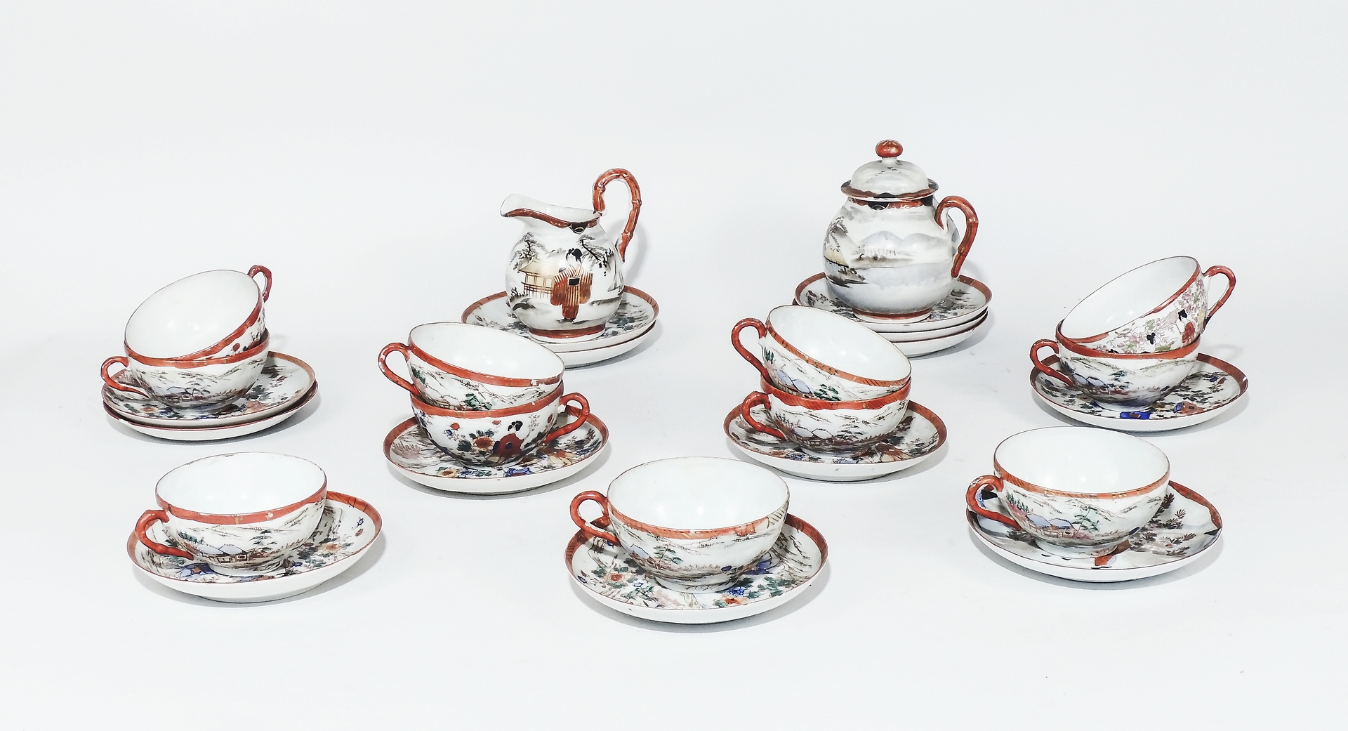 SERVITO DA TE IN PORCELLANA CINESE prima metà del XX secolo dipinto con figure e paesaggi, composto da undici tazze, zuccheriera e lattiera, difetti (13)
