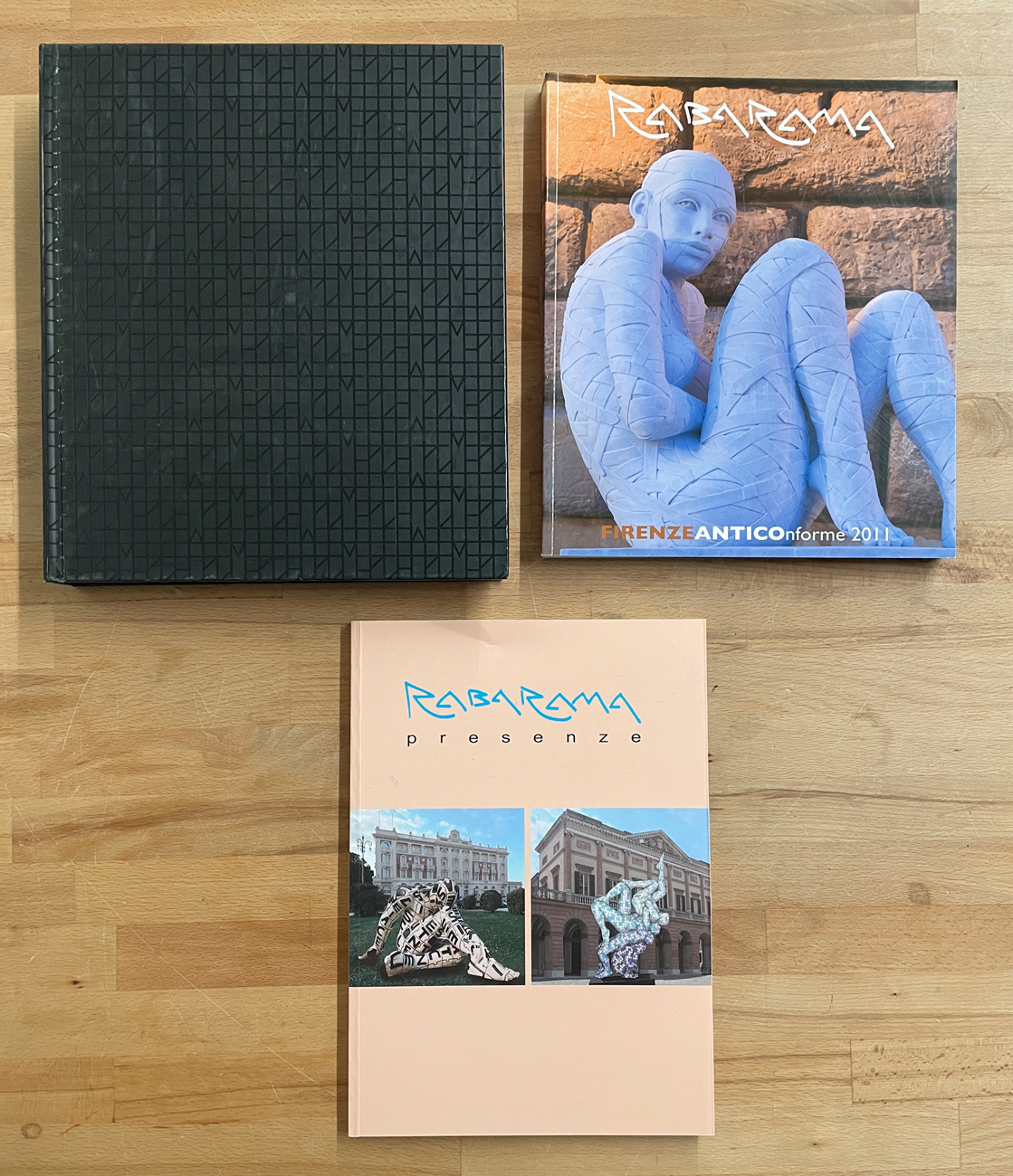 Catalogo riccamente illustrato con testi critici di Luca Beatrice e George Bolge, edito in occasione dell'esposizione tenutasi presso Piazza Pitti, Giardino di Boboli, Giardino delle Scuderie Reali, Complesso Le Pagliere, Firenze, 2011