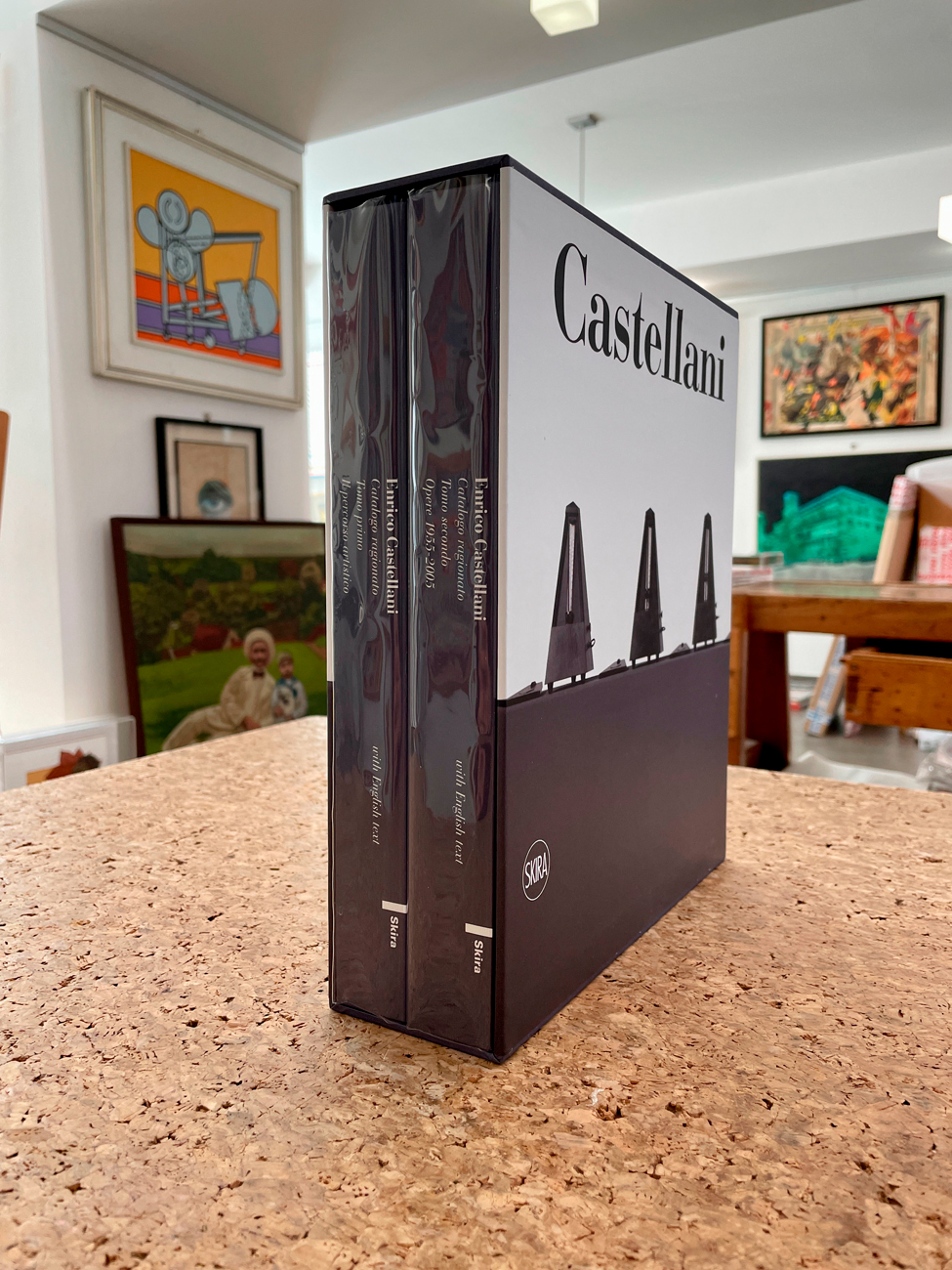 Lotto unico di 2 cataloghi ragionati delle opere di Enrico Castellani (Catalogo ragionato. Tomo I. Il percorso artistico e Catalogo ragionato. Tomo II. Opere 1955-2005), a cura di Renato Wirz con Federico Sardella, testi di Bruno Corà e Marco Meneguzzo