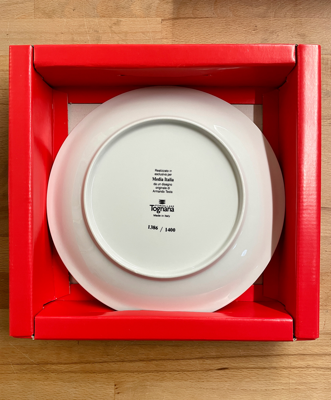 Piatto in porcellana realizzato in esclusiva per Media Italia da un disegno originale di Armando Testa