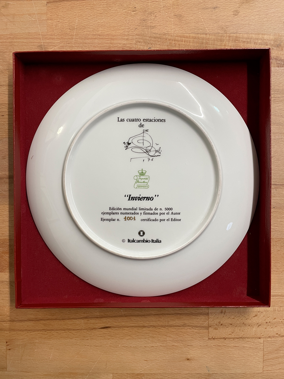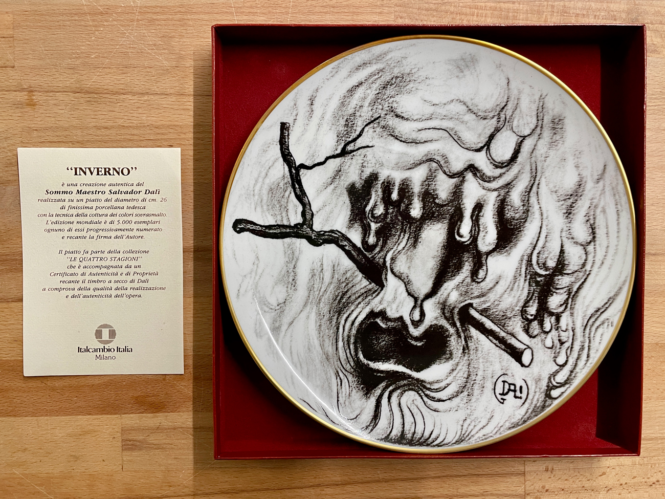 Il piatto fa parte della collezione 'Le Quattro Stagioni' che è accompagnata da un Certificato di Autenticità e di Proprietà recante il timbro a secco di Dalì, comprova della qualità della realizzazione e dell'autenticità dell'opera