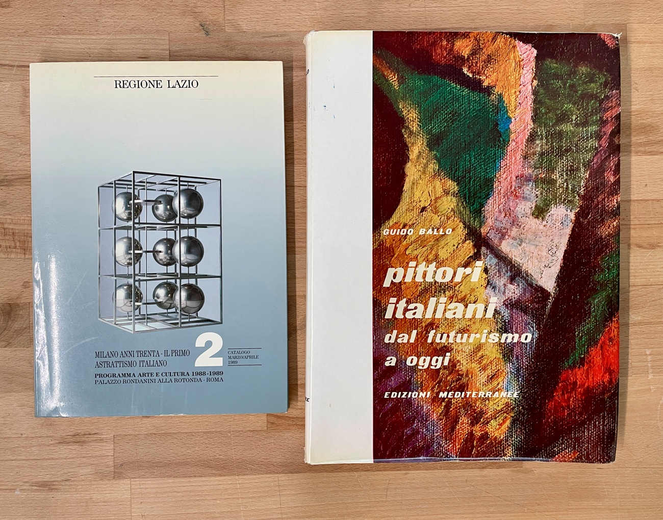 Catalogo riccamente illustrato edito in occasione dell'esposizione tenutasi presso Palazzo Rondanini alla Rotonda, Roma, 1989 (opere di Licini, Ghiringhelli, Magnelli, Veronesi, Munari, Fontana, Reggiani, Melotti, Bogliardi e Soldati