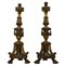 Tre torceri Legno dorato e finemente scolpito a morivi ornamentali e vegetali...