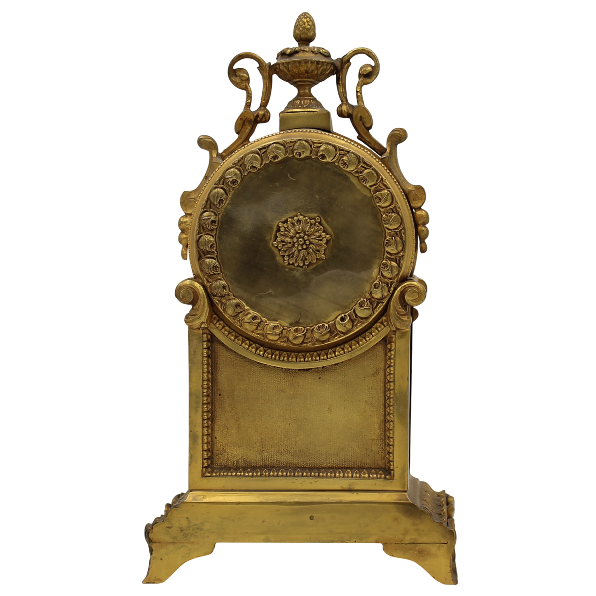 Orologio da tavolo Bronzo dorato con placche in porcellan dipinta a motivi...