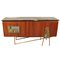 Grande mobile bar Legno scannellato con applicazioni in vetro e legno dipinto...
