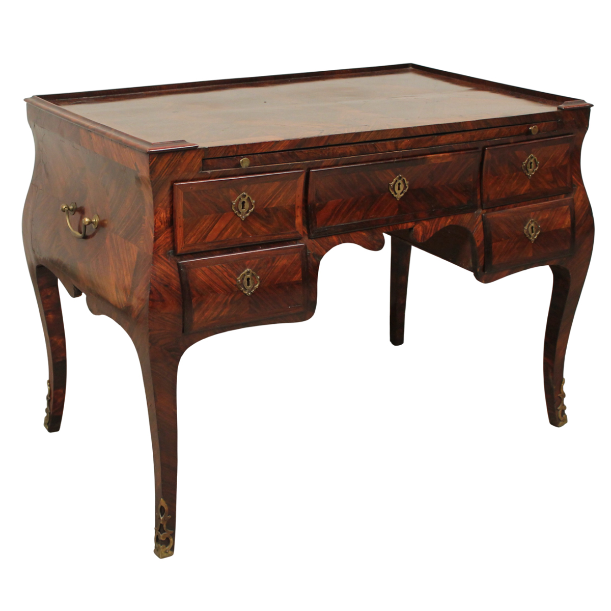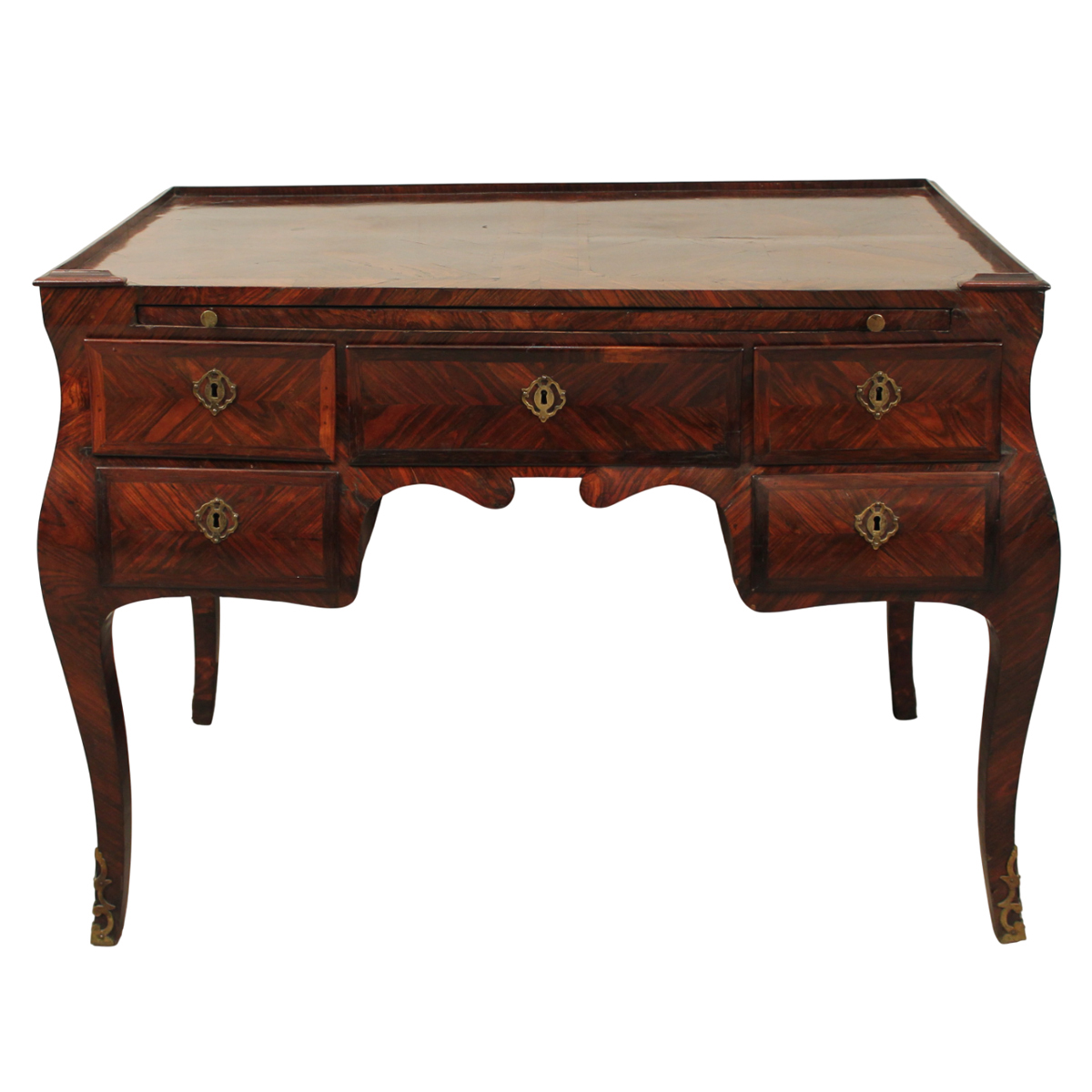 Scrittoio a cinque cassetti Ebano violetto con tiretto centrale e borchie in branzo dorato. Sicilia. Epoca Luigi XV. Cm 112,5x69 h 82