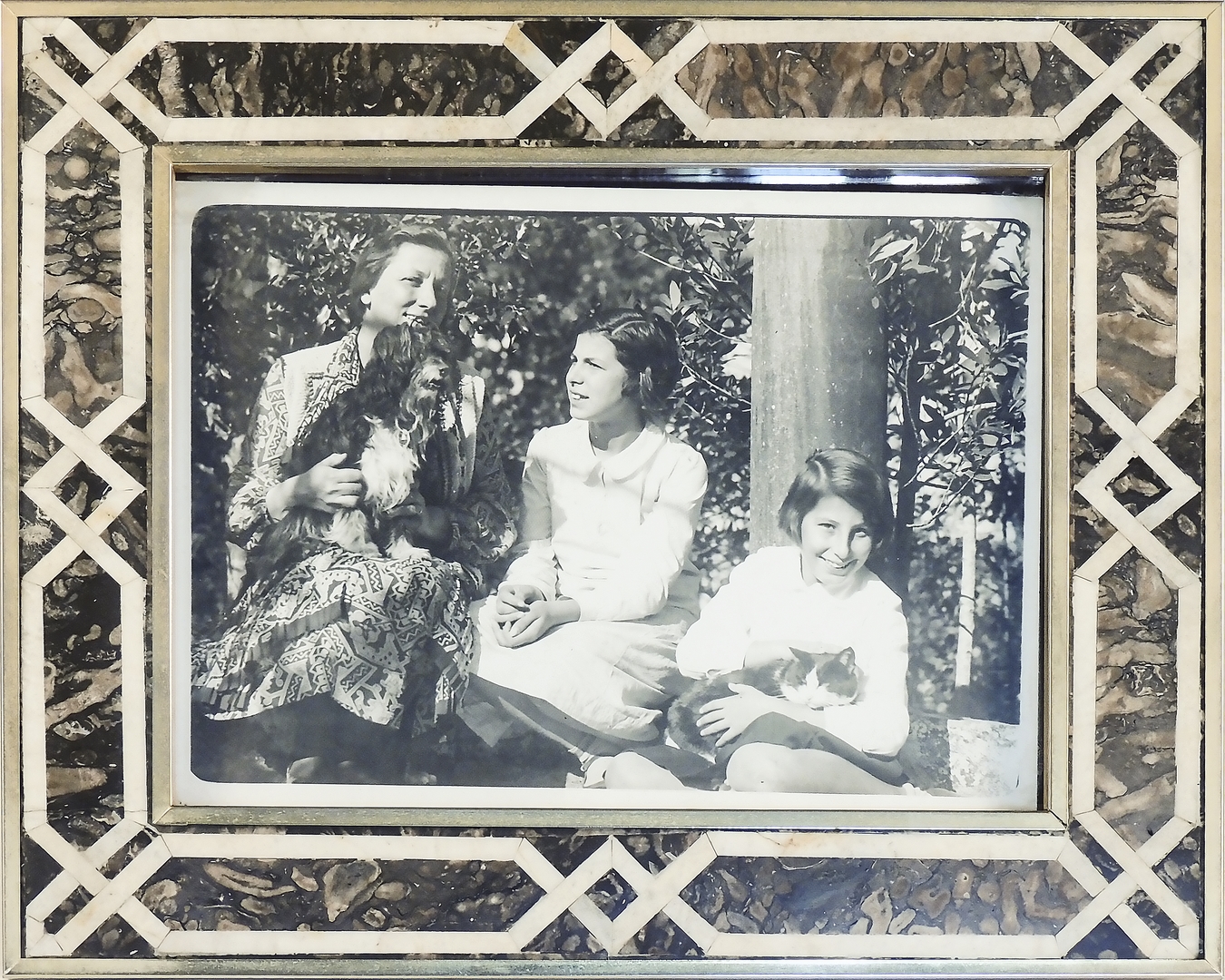 Cornice portaritratti intarsiata a motivi geometrici in marmi