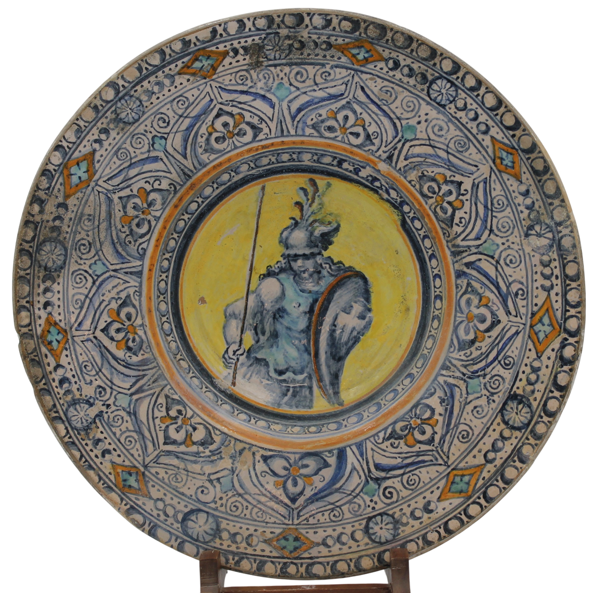 Lot 422 | Piatto Antica maiolica con decoro centrale raffigurante guerriero e decoro a...