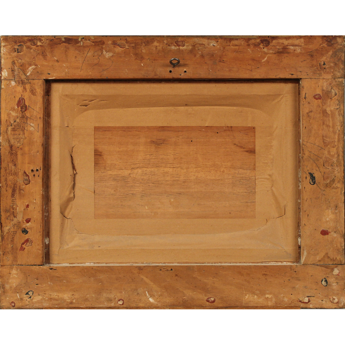 Paesaggio innevato Dipinto ad olio su tavola in cornice in legno dorato. Firma indistinta. Inizi secolo XX. Cm 27x39