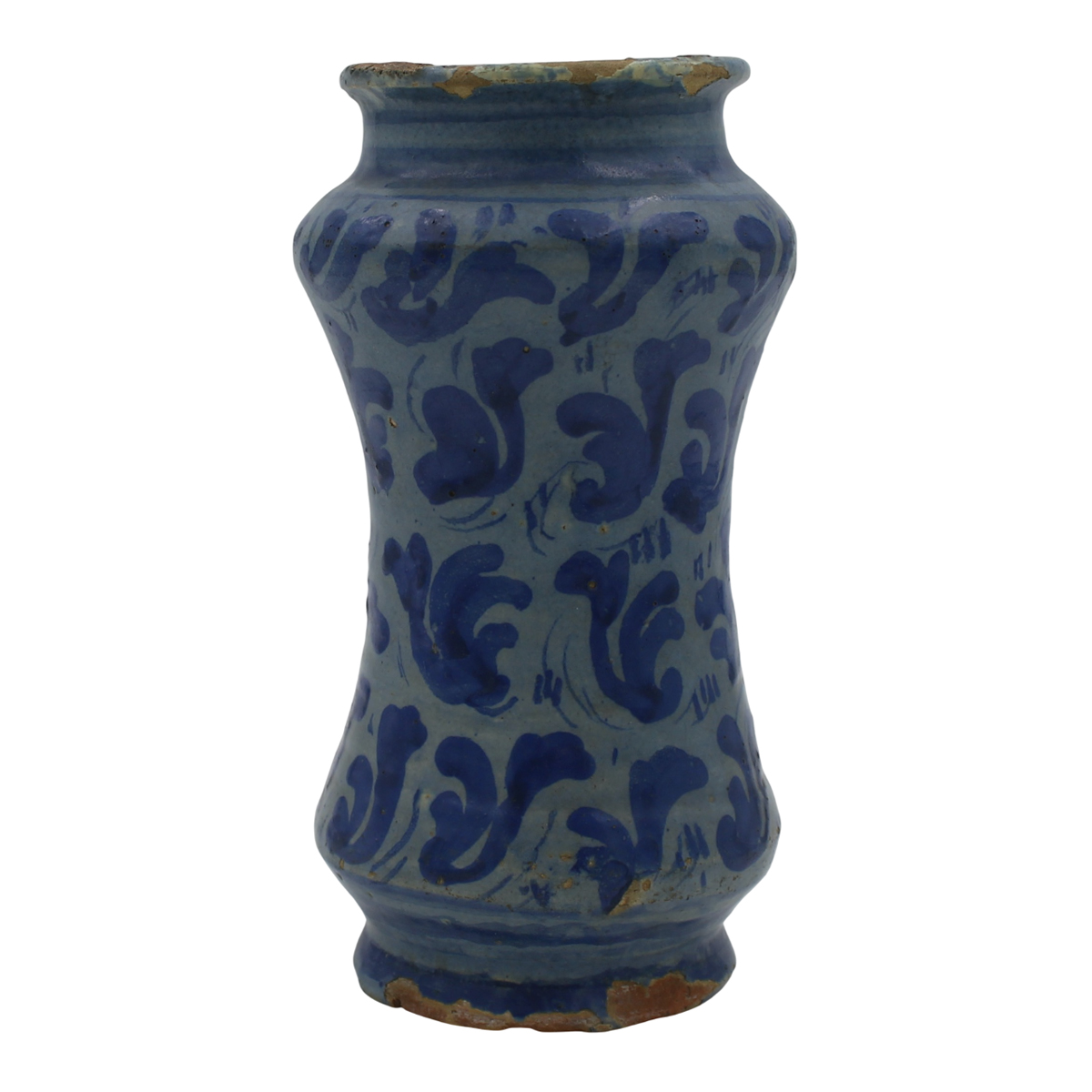 Albarello Antica maiolica decorata a fondo berrettino. Caltagirone. Secolo...