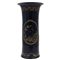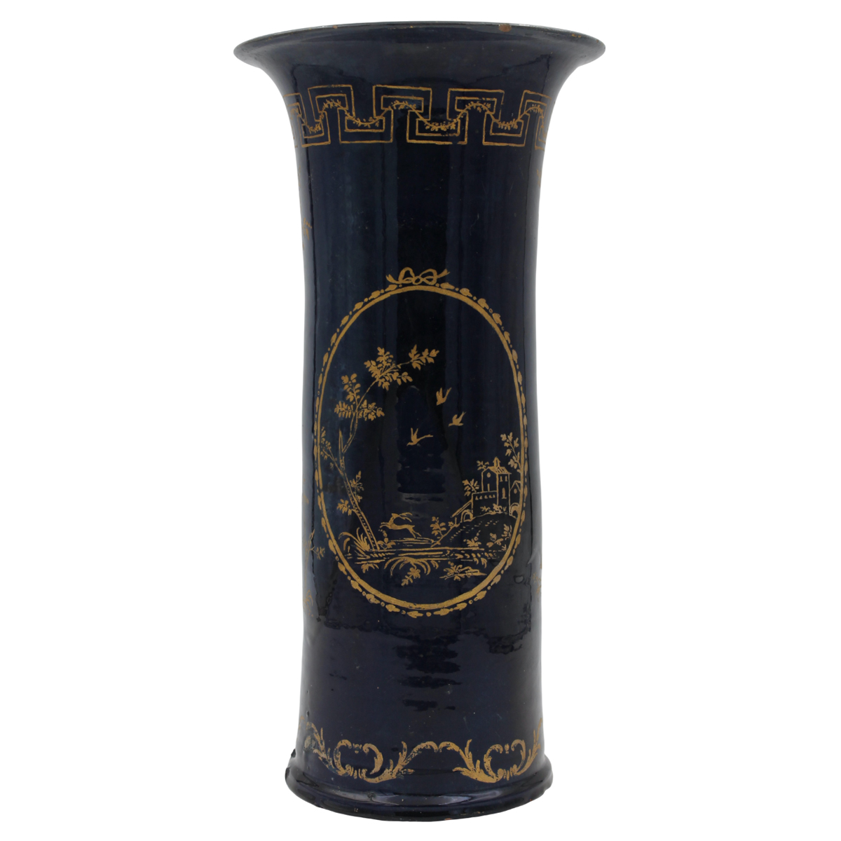 Vaso a tromba Antica maiolica decorata con medaglioni raffiguranti paesaggi e motivi floreali e geometrici dorati su fondo blu cobalto. Probabile Sperlinga. Fine secolo XVIII. Cm h 42,5