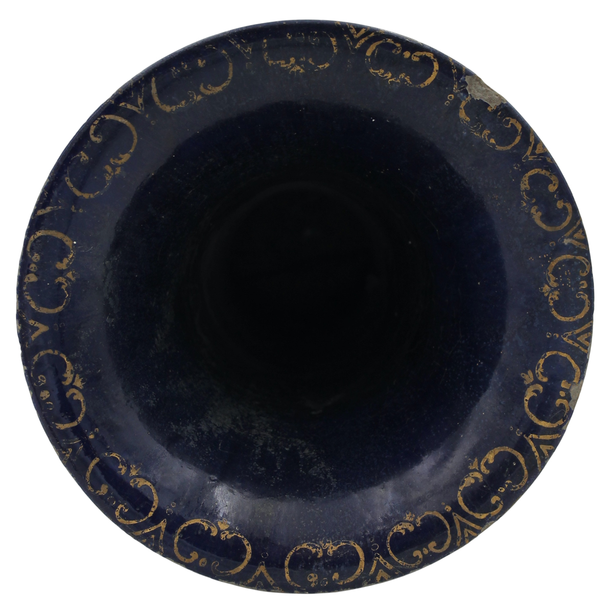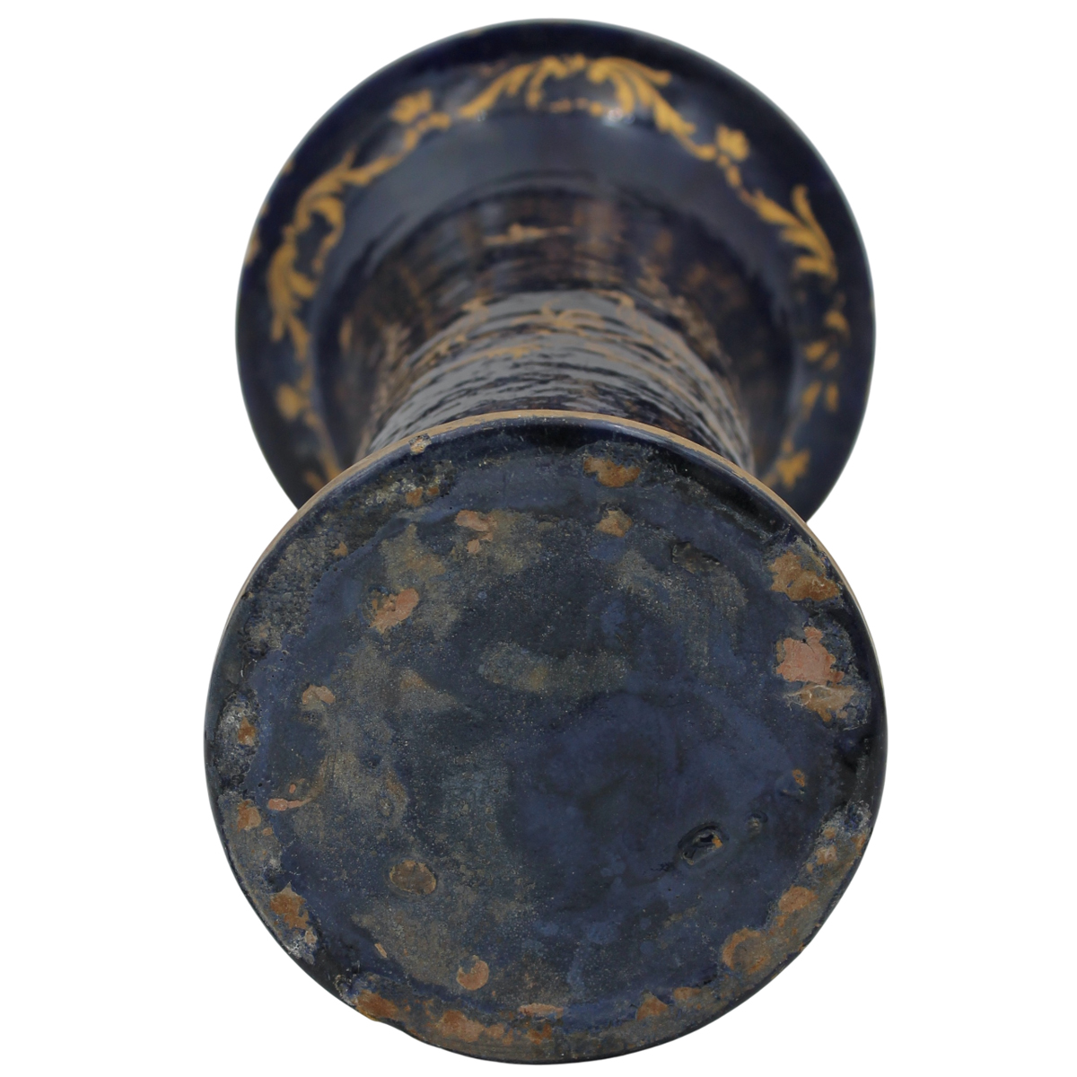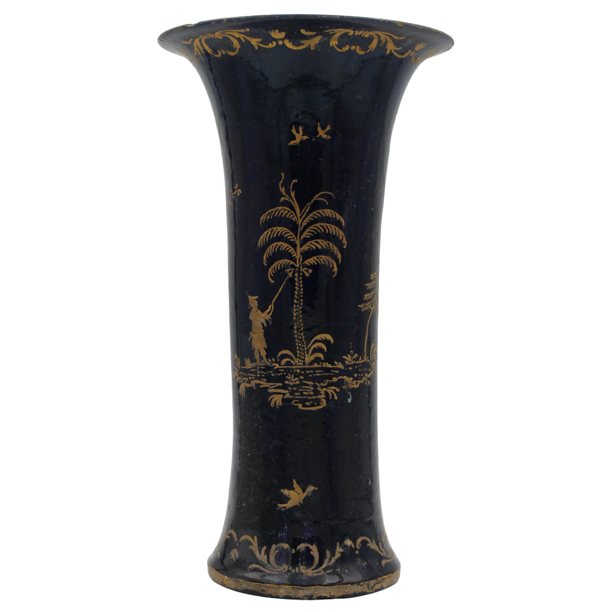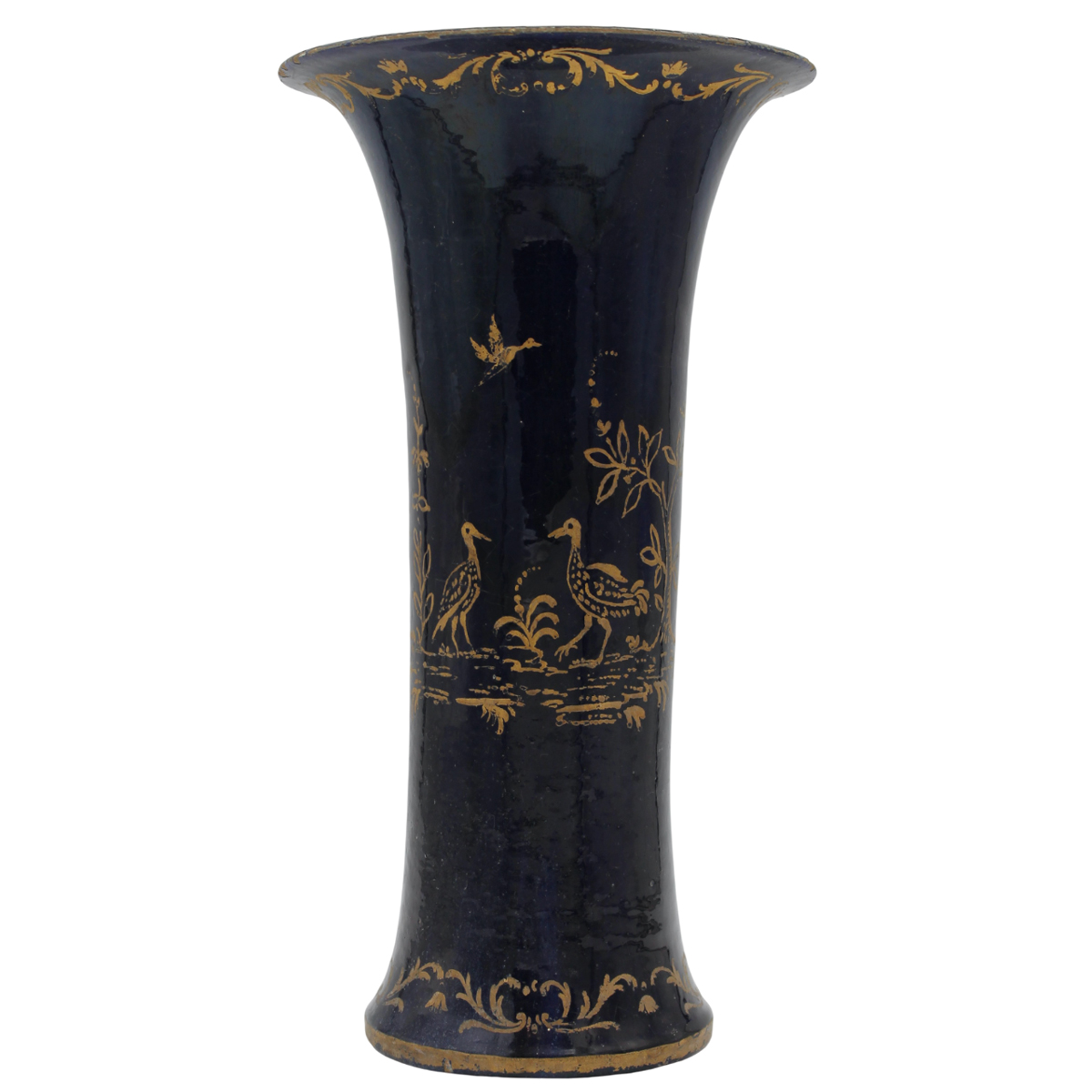Vaso a tromba Antica maiolica decorata a motivi orientali e volatili dorati su fondo blu cobalto. Probabile Sperlinga. Fine secolo XVIII. Cm h 40
