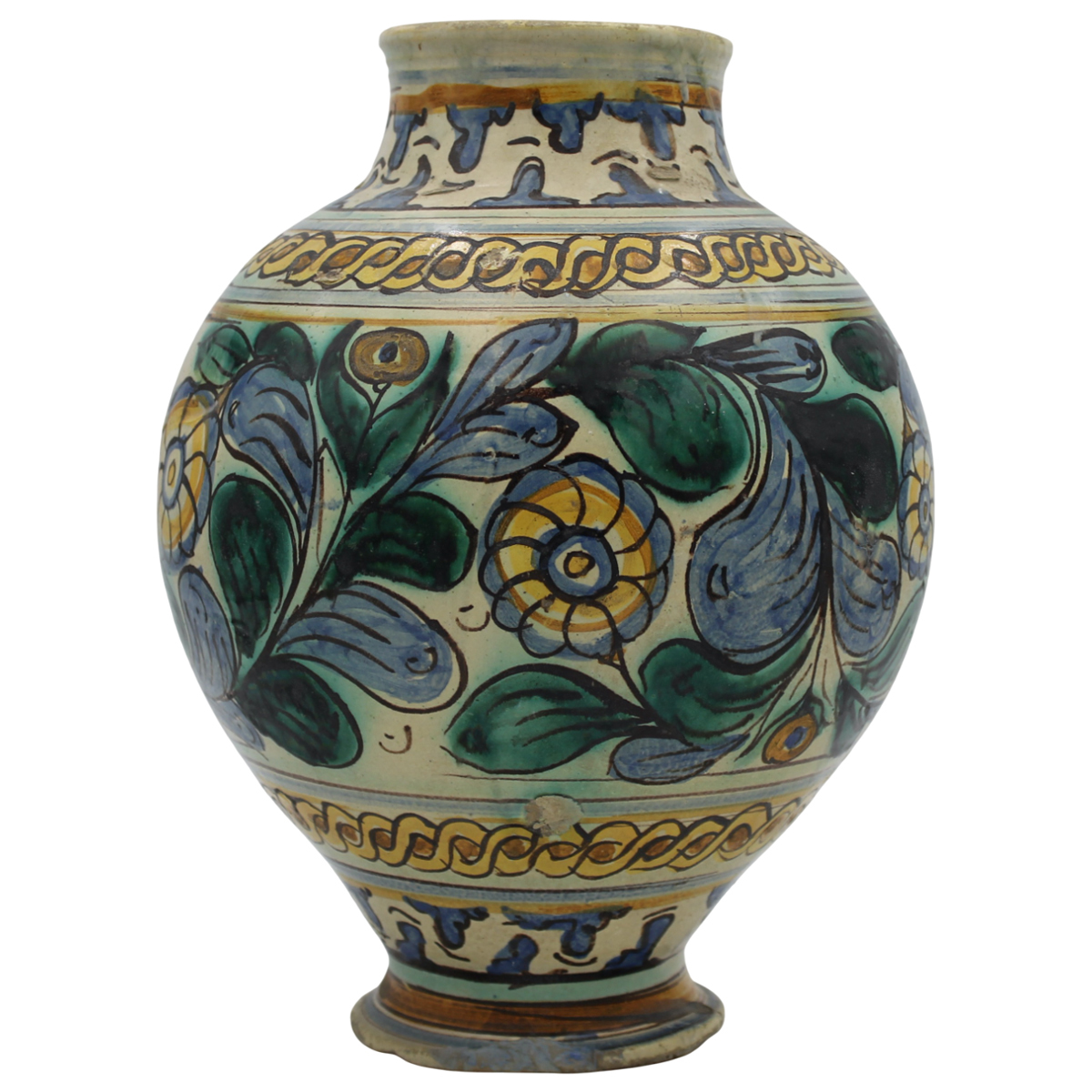 Grande vaso ovoidale Antica maiolica policroma decorata sul davanti co...