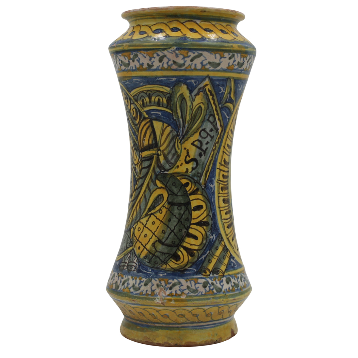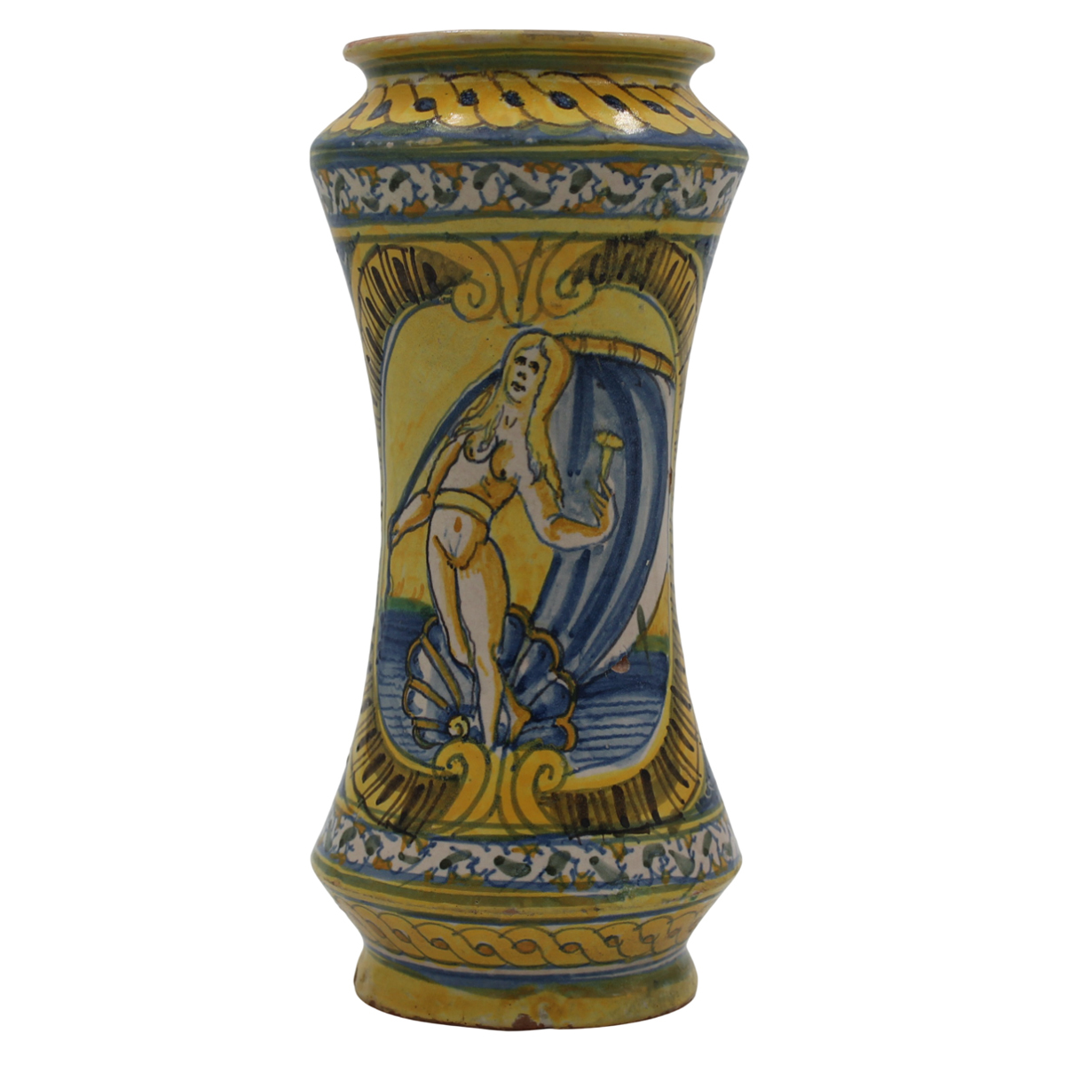 Lot 479 | Grande albarello Antica maiolica policroma decorata su fronte con la nascita...