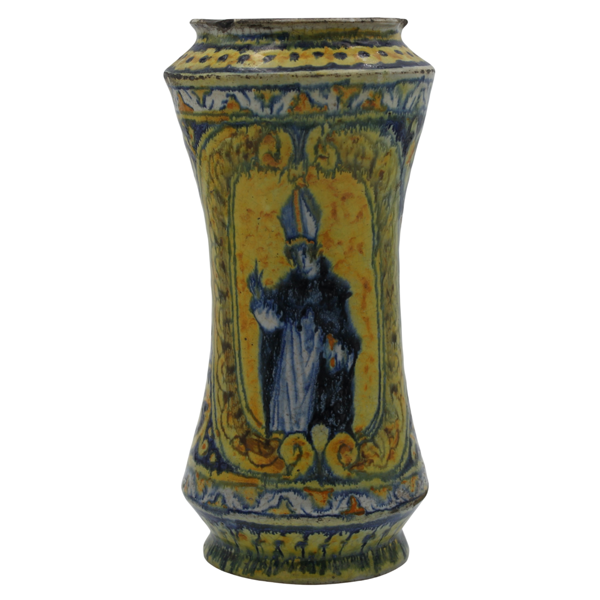 Lot 481 | Albarello Antica maiolica con medaglione centrale raffigurante prelato e...