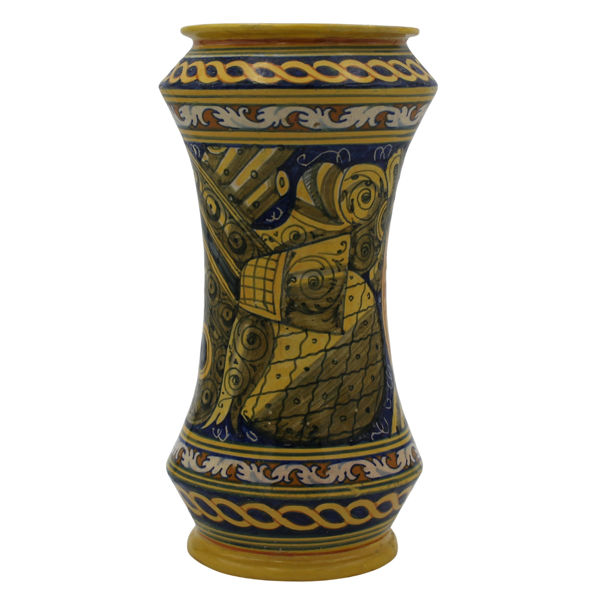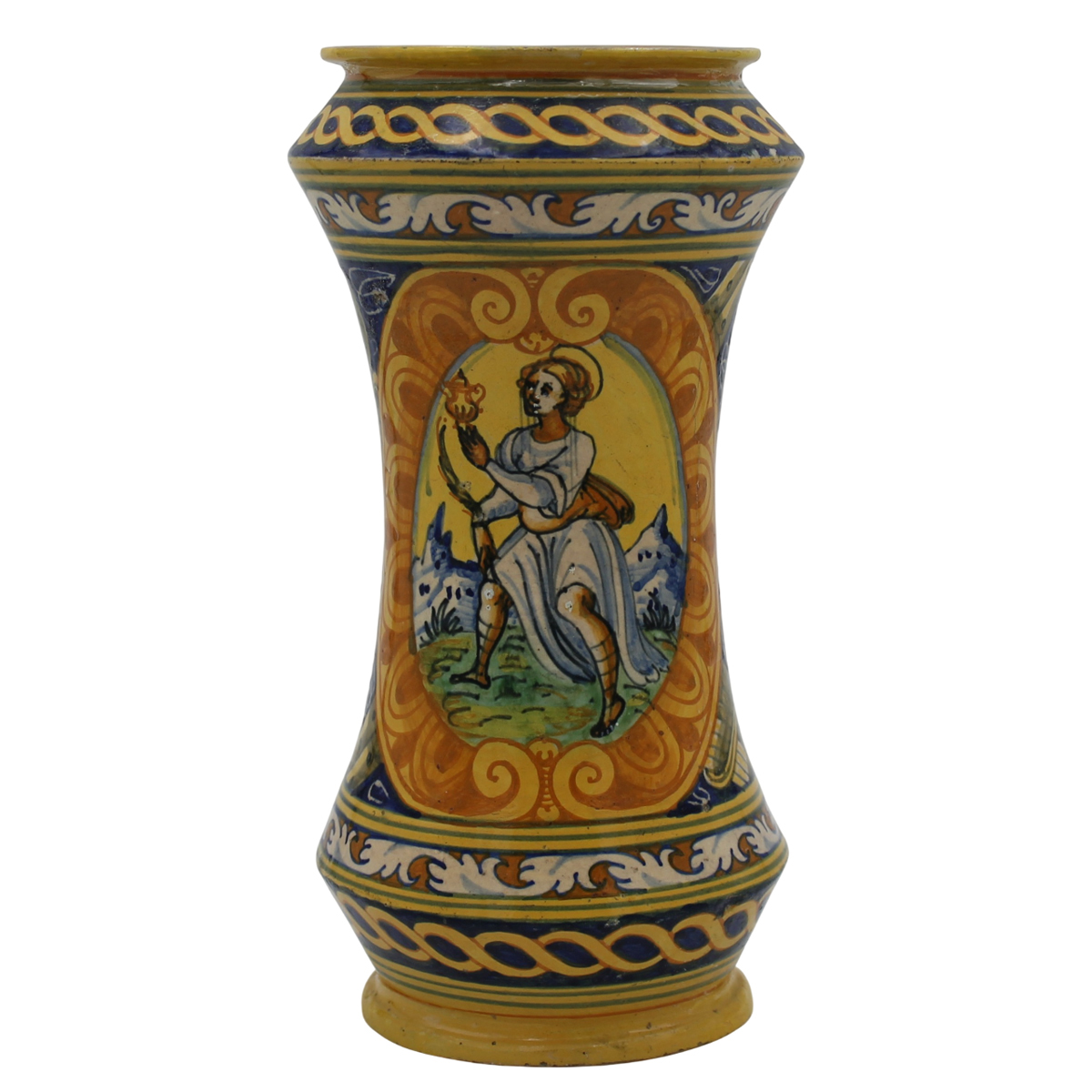 Lot 491 | Albarello Antica maiolica con medaglione centrale raffigurante Santa e sul...