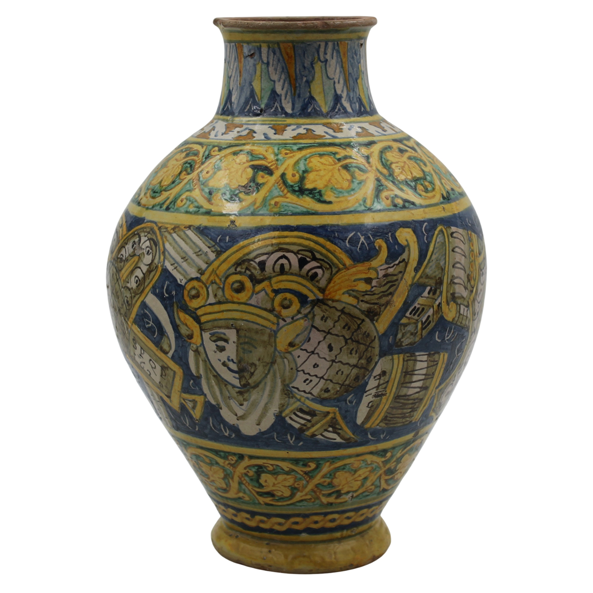 Importante vaso ovoidale Antica maiolica con medaglione centrale raffigurante...