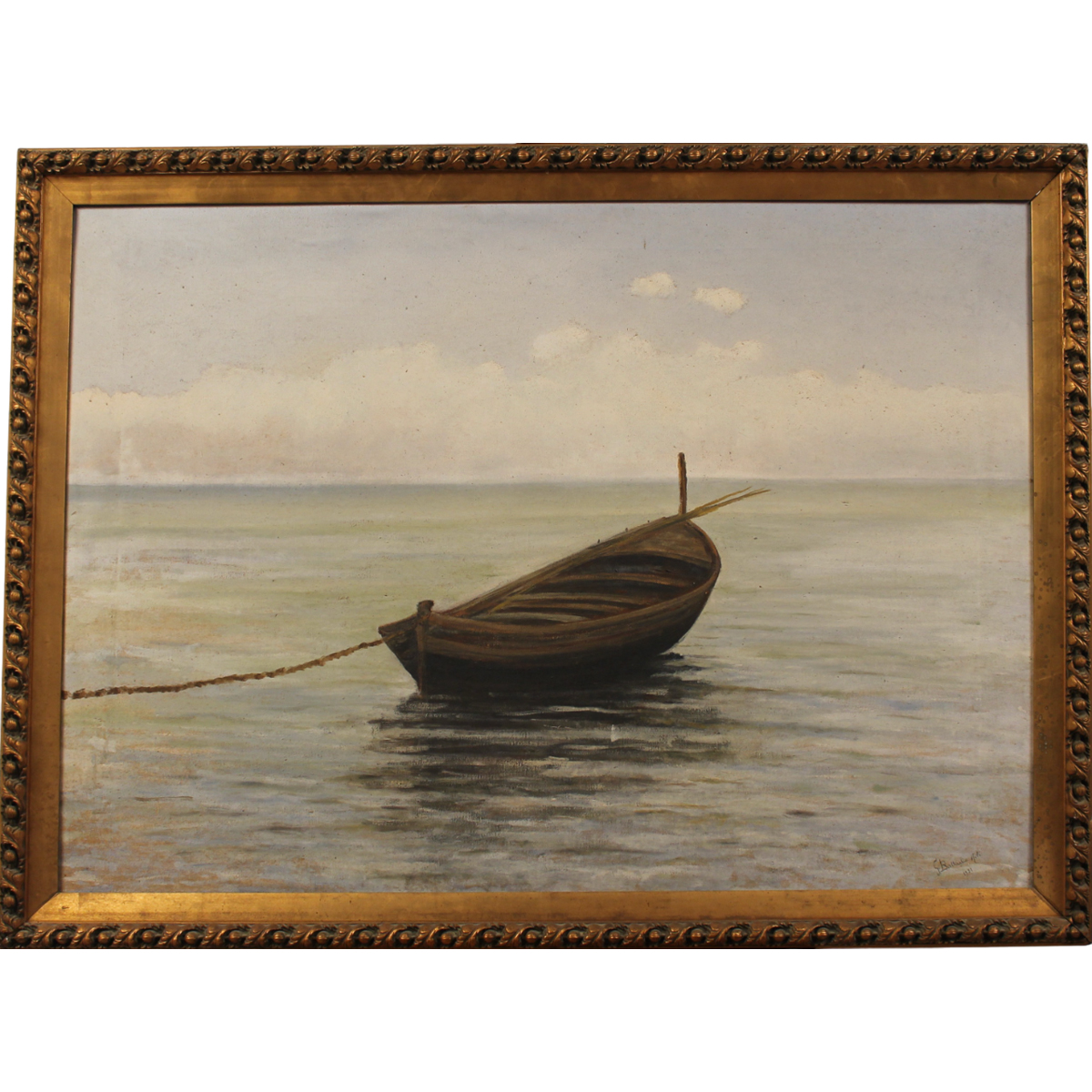 La barca Dipinto ad olio su tela in cornice in legno dorato. Firmato G....